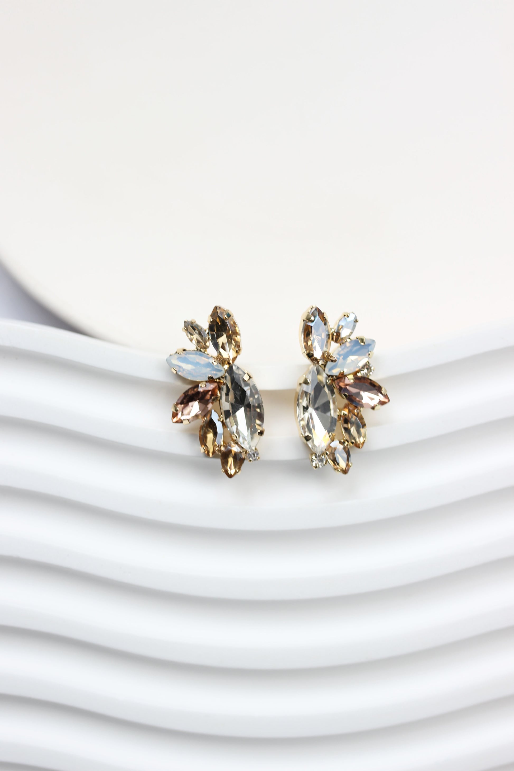 The dainty design makes these a beautiful crystal half butterfly design to your beautiful outfit! These earrings feature gold hardware, color crystal detailing, and a secure post backing.