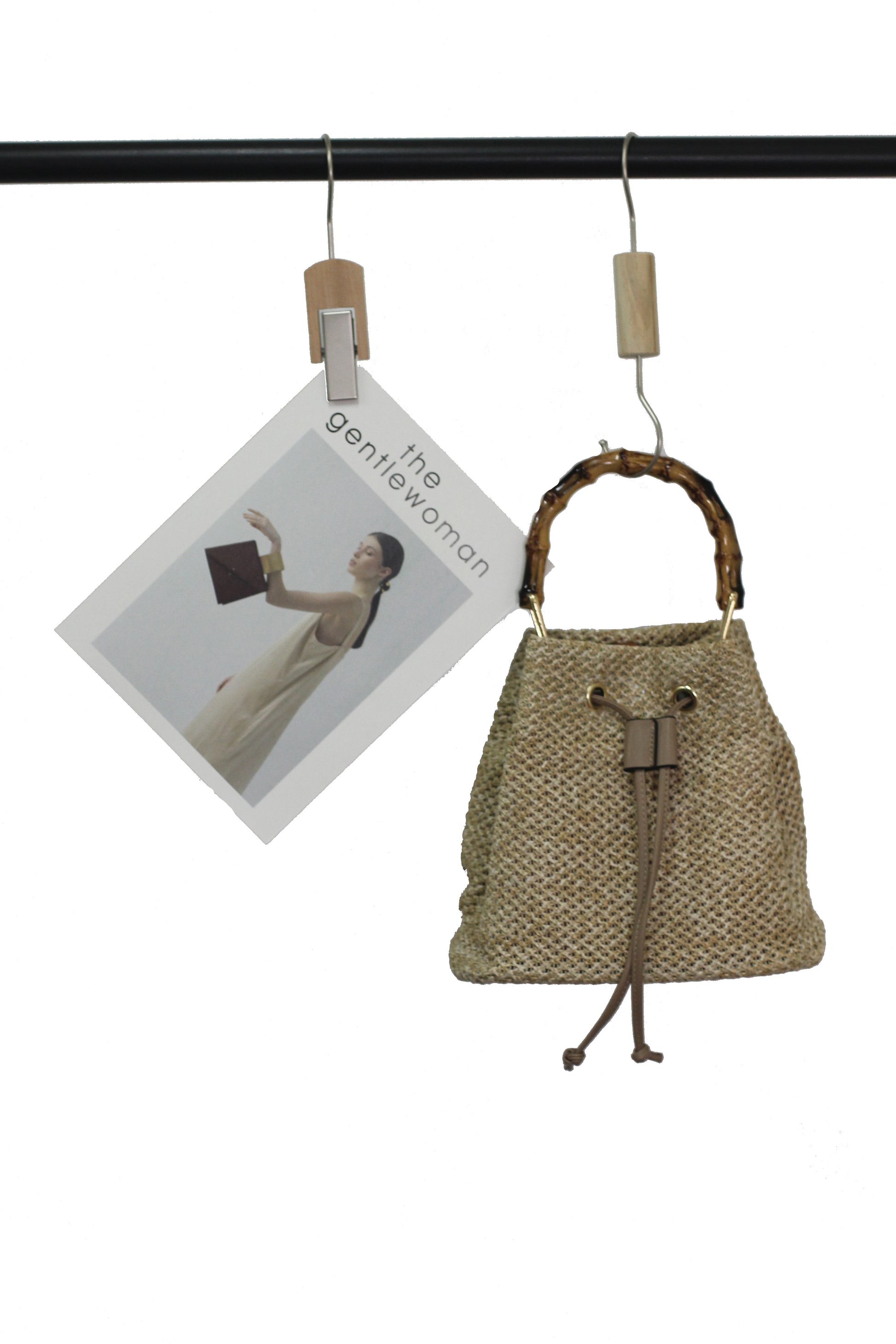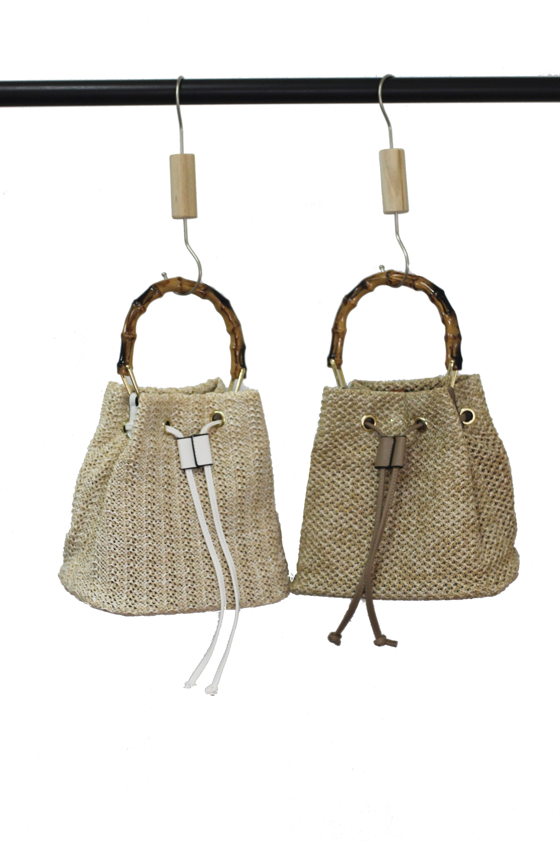 This happy hour bag featured bamboo handle, trend bucket shaped bag.
