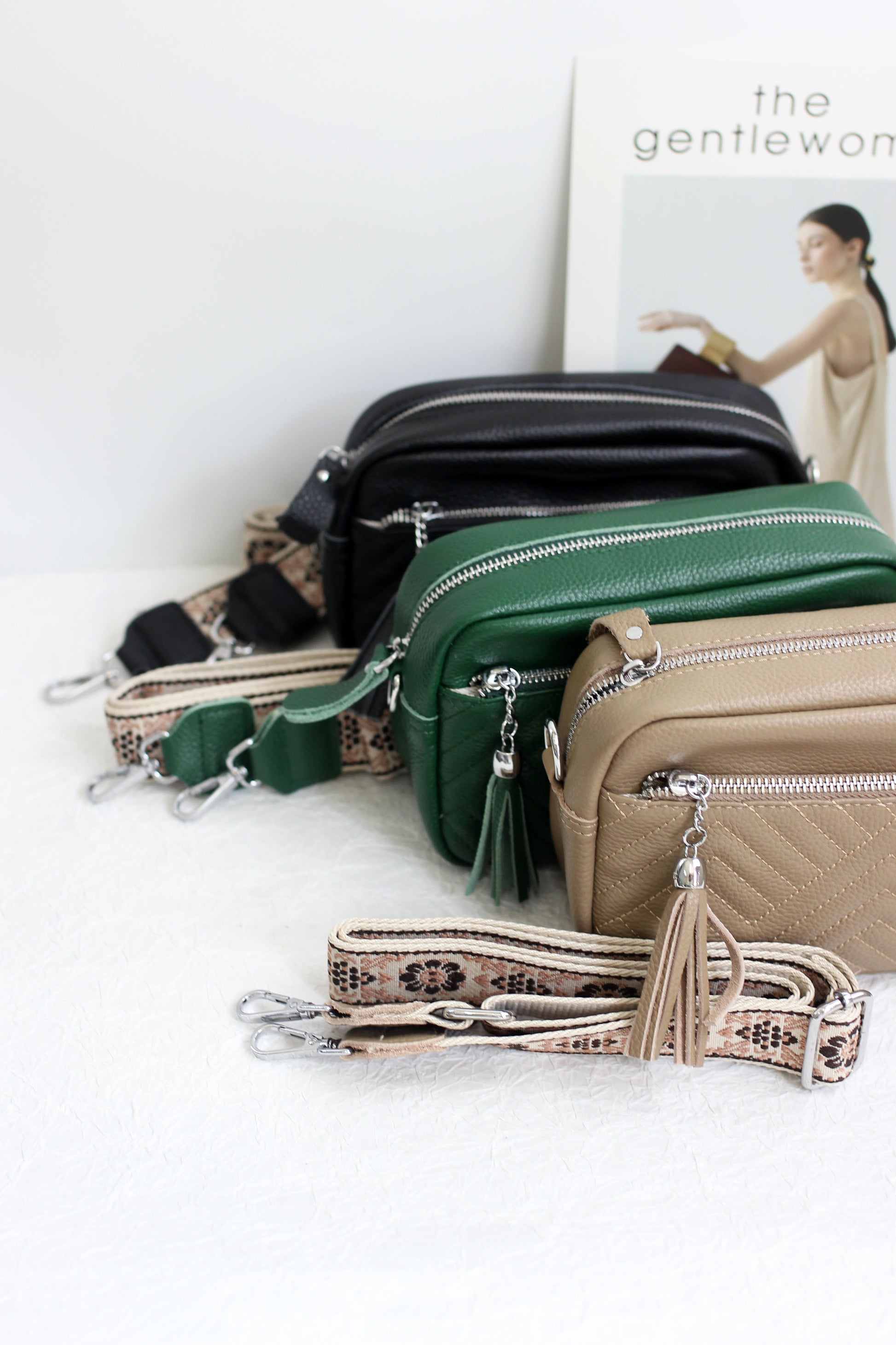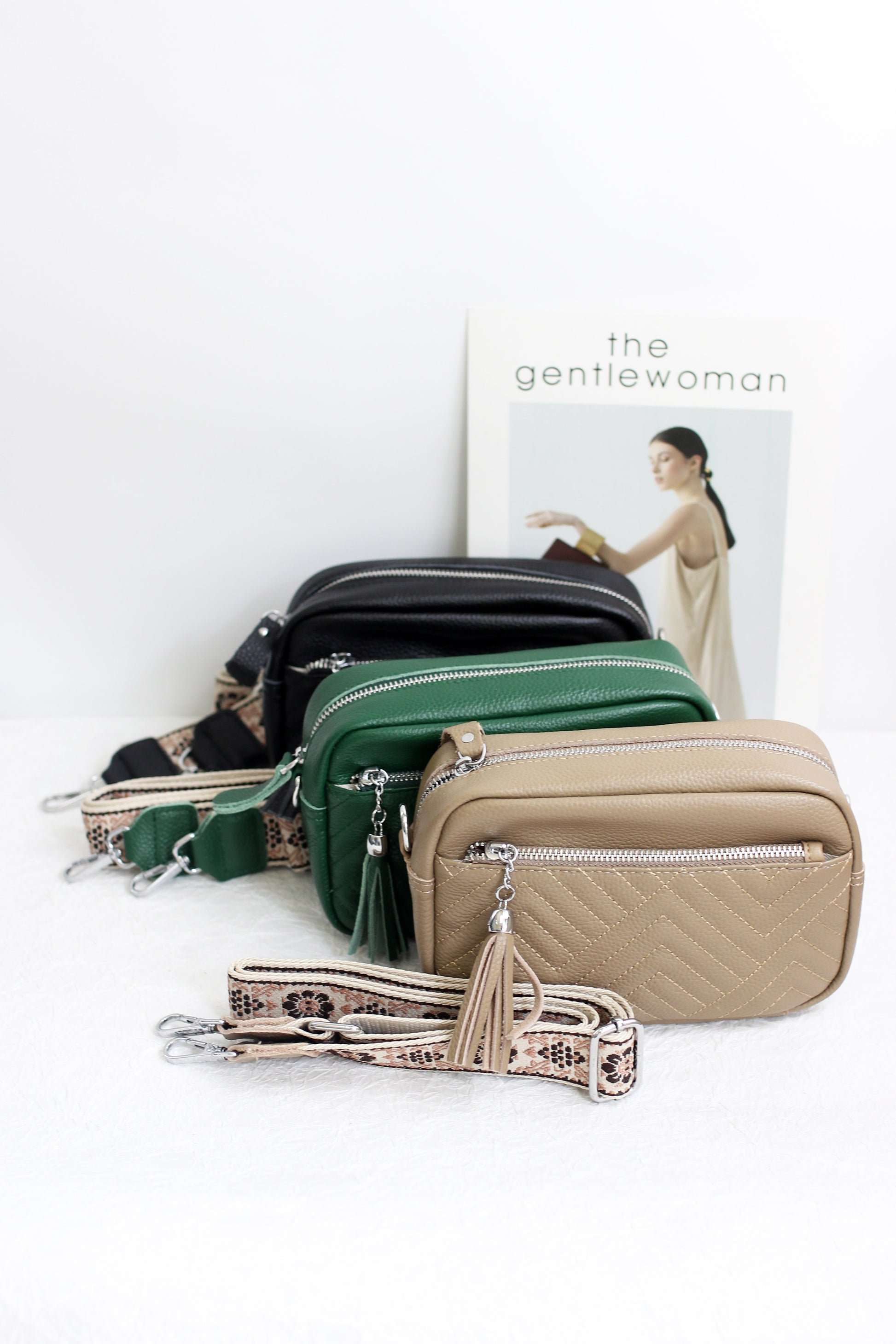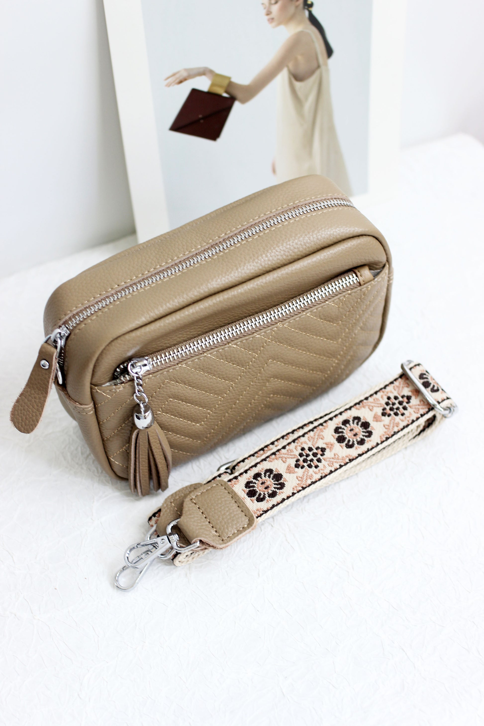 Get ready to hit the streets with the West Coast Leather Bag! This bag is the perfect blend of style and practicality. The quilted design adds a touch of elegance, while the compact size makes it easy to carry around. This red bag features silver hardware with zip closure, a removable patterned woven strap, lined inside, inside pocket with zip closure , outside pocket with zip closure and tassel detail.?