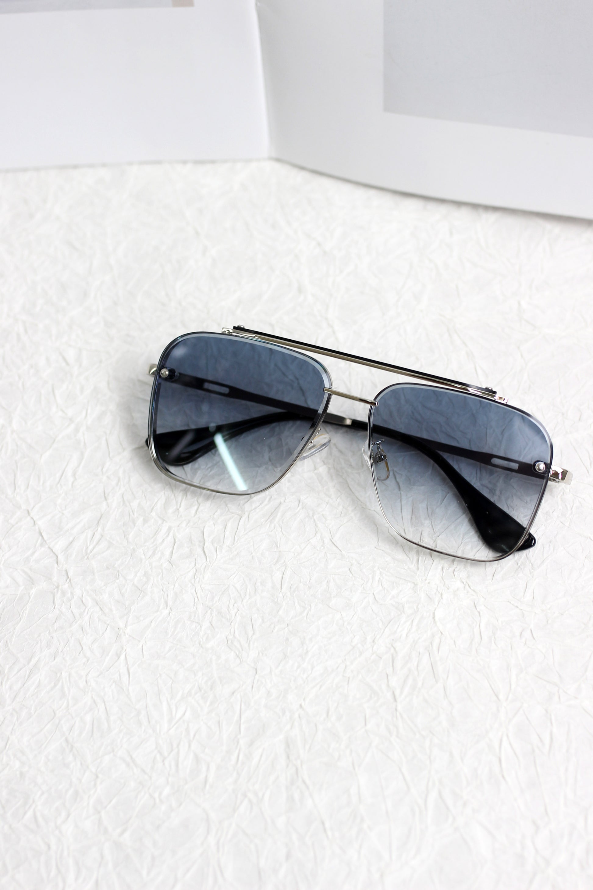 These trendy aviator sunglasses come in two distinct styles, featuring both gold and silver frames. The lenses offer a gradient tint, with one pair showcasing a dark brown hue and the other a cool blue shade. Designed with a sleek metal frame, these sunglasses provide a perfect blend of fashion and functionality, offering UV protection while enhancing your overall look. Ideal for both casual and formal settings, these aviators are a must-have accessory for any wardrobe.