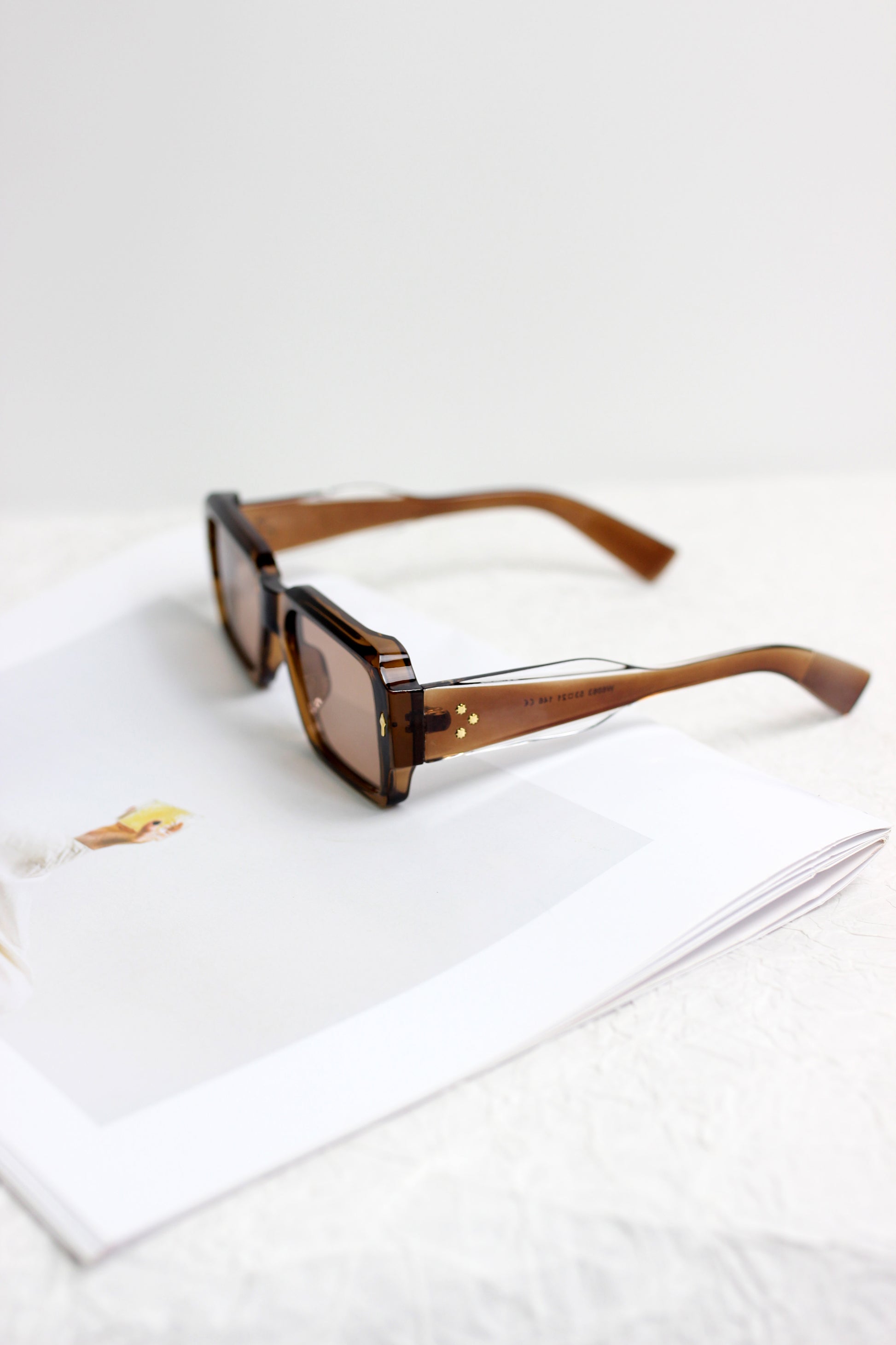 This bold pair of sunglasses featuring brown-tinted lenses and a chunky, square tortoiseshell frame, offering a retro and distinctive look.