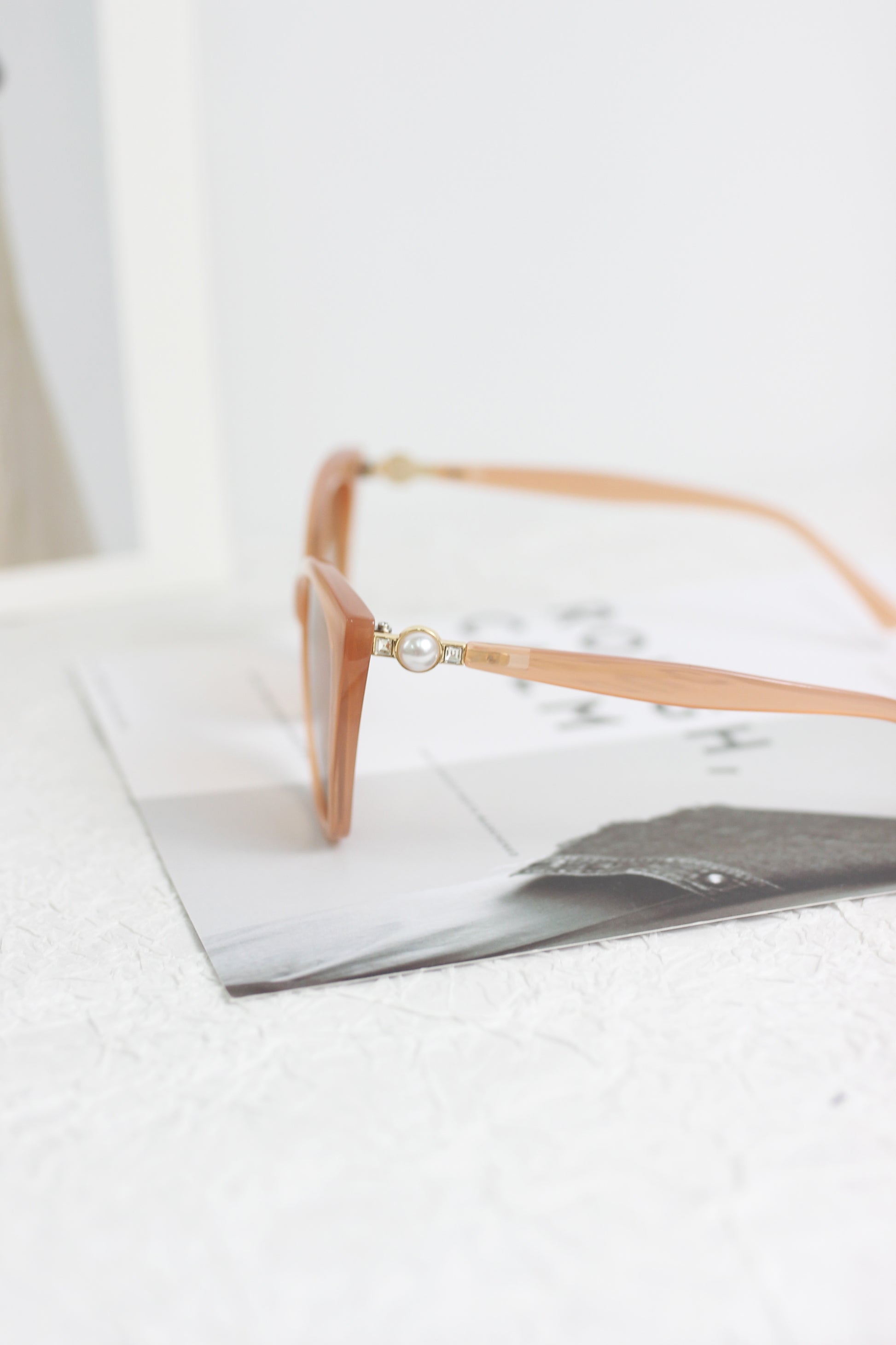These are the "Caramel Glow Sunglasses," exquisitely designed to enhance any ensemble with a splash of warm color. The sunglasses feature oversized, almond-shaped frames in a soft caramel hue, offering a fresh take on a retro style. The lenses are tinted in a matching gradient shade that not only protects the eyes from harmful UV rays but also adds an air of mystery. Each temple is adorned with a subtle metallic detail, adding a hint of glamour. Perfect for those sunny days out or as a fashionable complement to your chicest outfits, these sunglasses blend functionality with high-end fashion, ensuring both style and comfort. 2nd color option black.