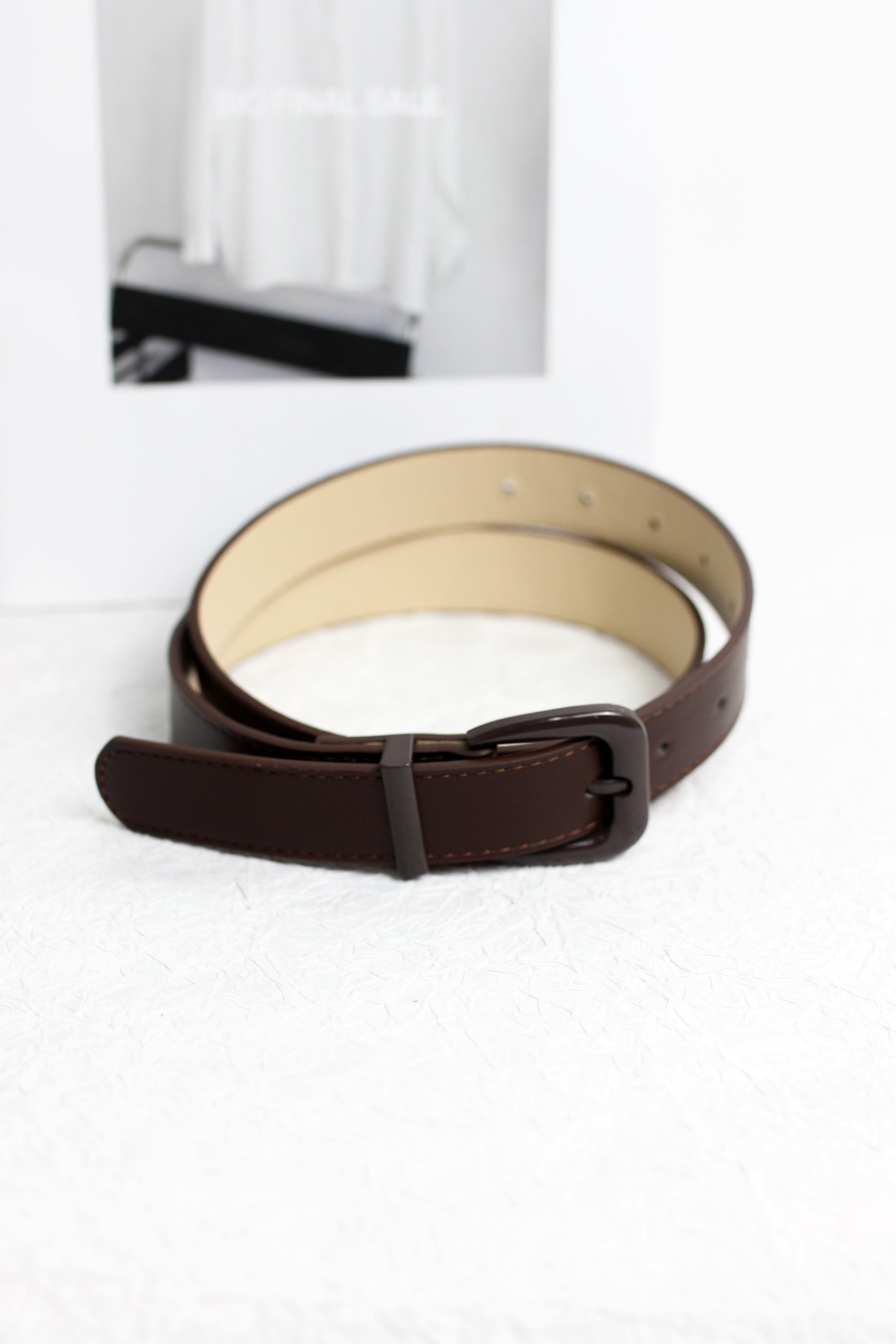 This sleek and stylish belt is crafted from high-quality faux PU leather, featuring a durable double prong buckle design. It offers a modern and minimalistic look, perfect for both casual and formal wear. The belt is designed to be adjustable for a comfortable fit and adds a touch of sophistication to any outfit. Ideal for everyday use or special occasions, this belt combines functionality with fashion.