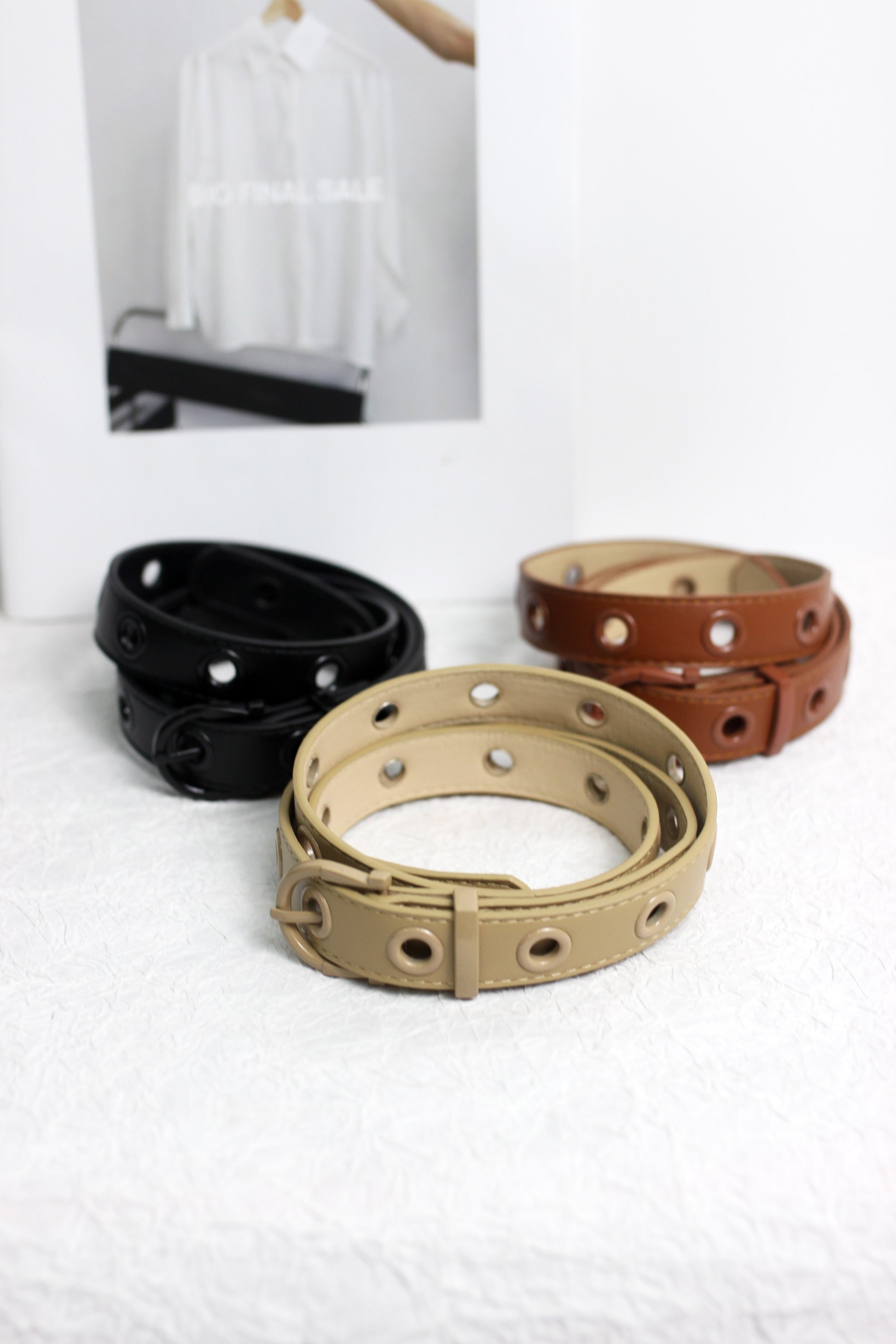 A2408ASS61130 - Faux PU Leather Belt with Eyelet Design