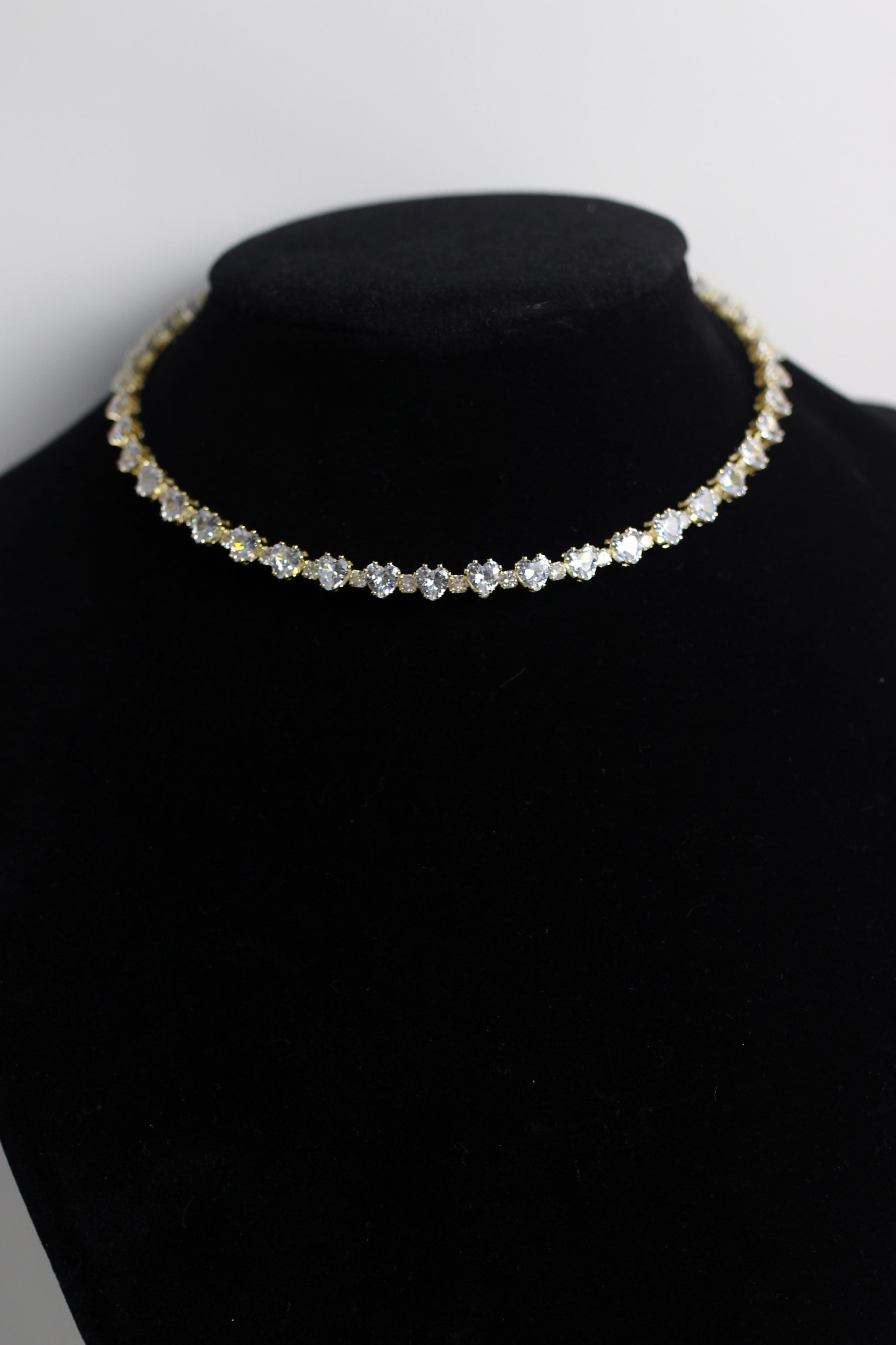 - Details: The necklace is delicately arranged with brilliant stones, ideal for adding a touch of sophistication to formal attire or special occasions.