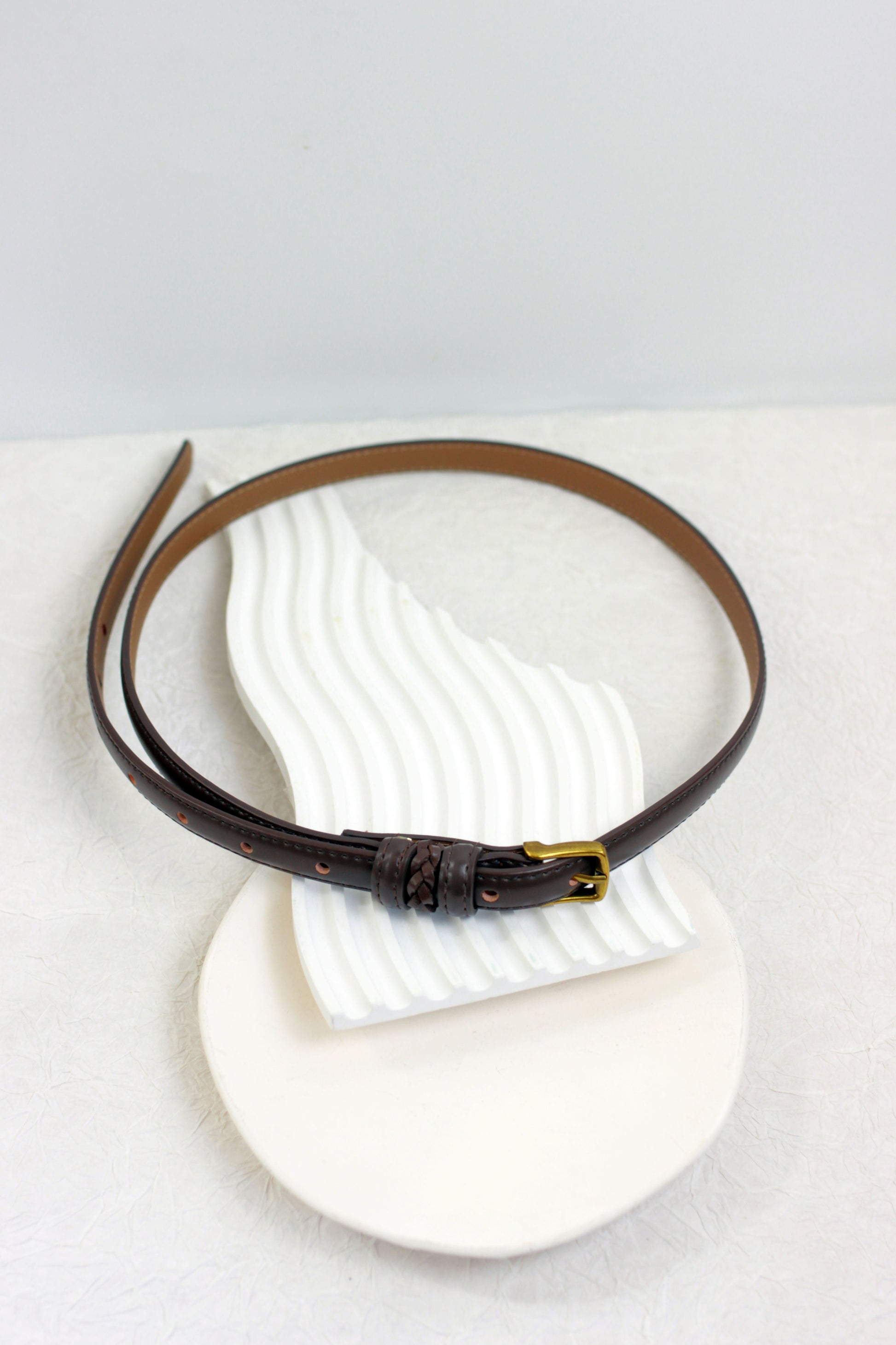 This stylish leather belt features a unique braided detail near the buckle, adding a touch of artisanal craftsmanship to its classic design. Crafted from quality leather, it includes a durable brass buckle that complements the belt?¡¥s timeless appeal. Adjustable and versatile, this belt is suitable for casual and formal looks alike, making it a practical yet stylish addition to any wardrobe. Its sleek design and detailed stitching ensure it will be a lasting accessory that pairs well with various outfits.