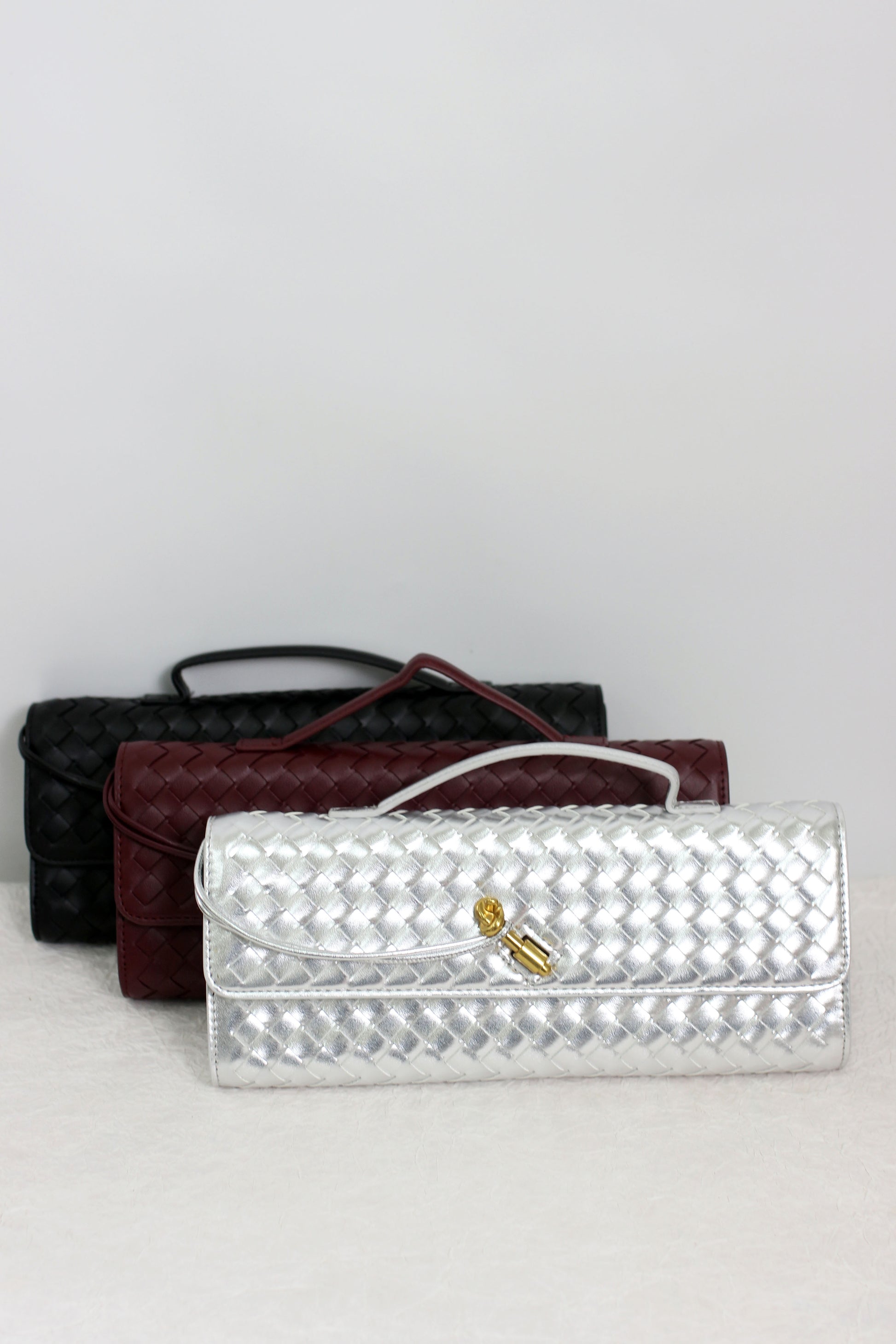 A2411CX44097 - Woven PU Leather Clutch Bag with Adjustable Strap