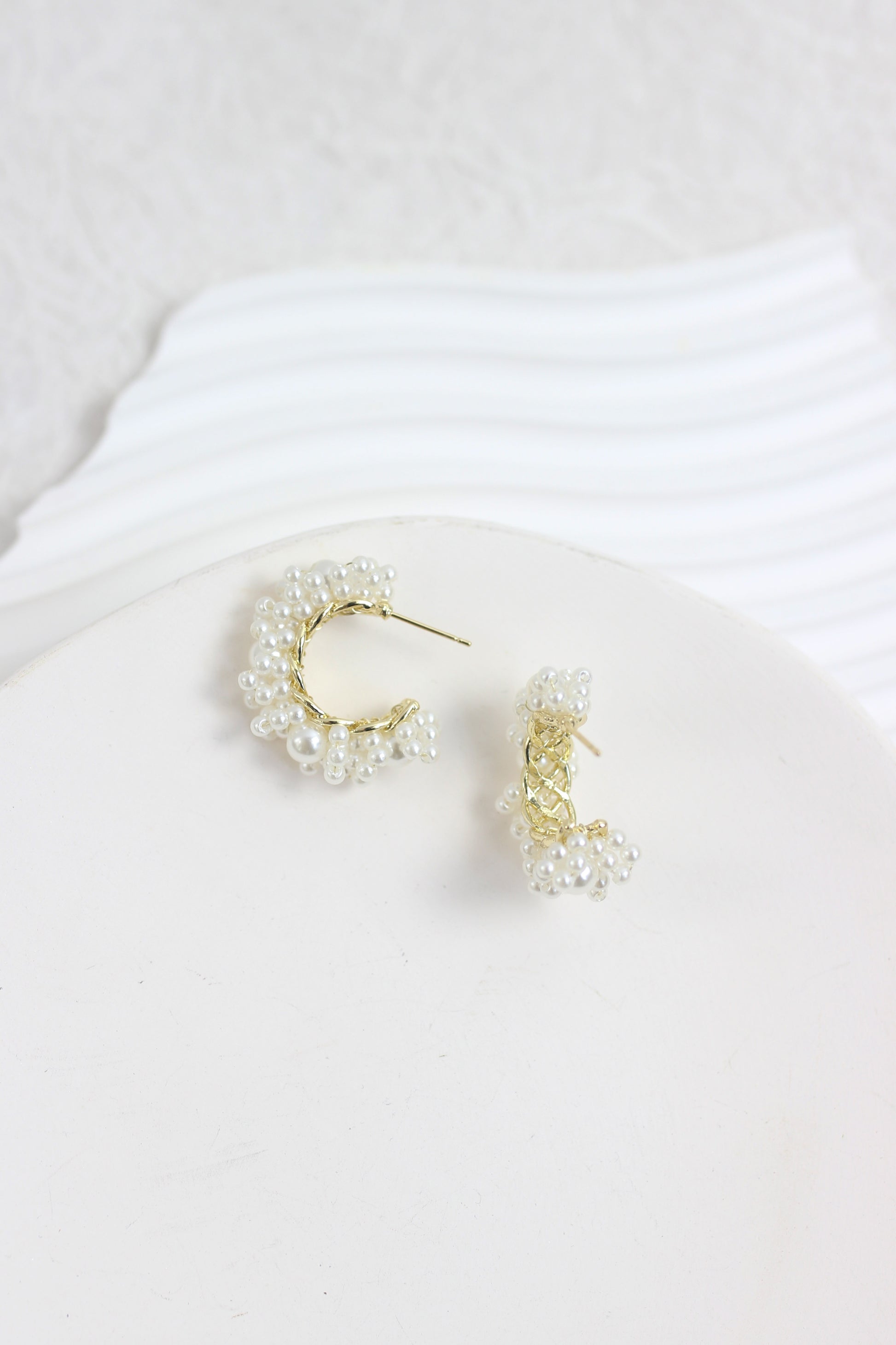 Elevate your style with our Pearl Cluster Hoop Earrings, designed to add a touch of elegance and sophistication to any ensemble. These exquisite earrings feature a dense cluster of lustrous pearls set on a delicate gold-toned hoop, creating a perfect balance between classic charm and modern flair. Crafted with high-quality materials, these earrings are suitable for special occasions or everyday wear. The versatile design ensures they pair beautifully with both formal and casual outfits, making them a must-have accessory in your jewelry collection.