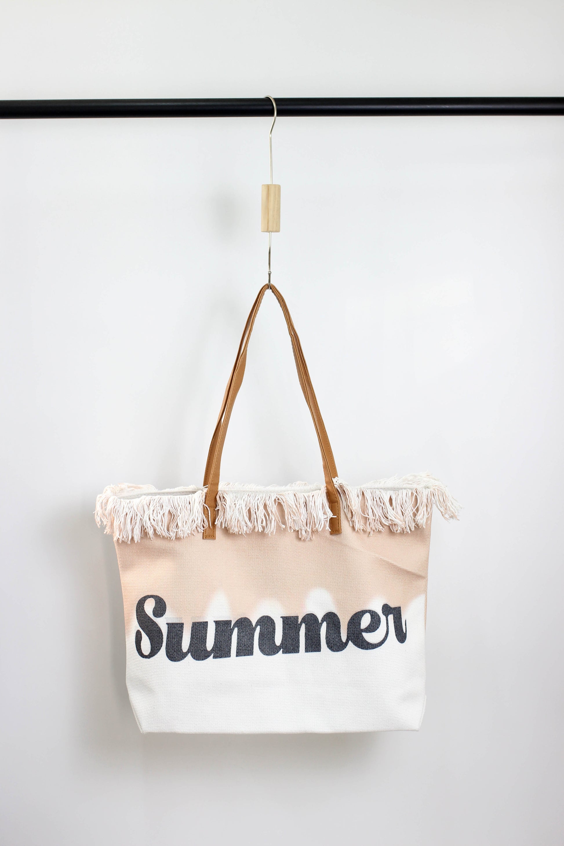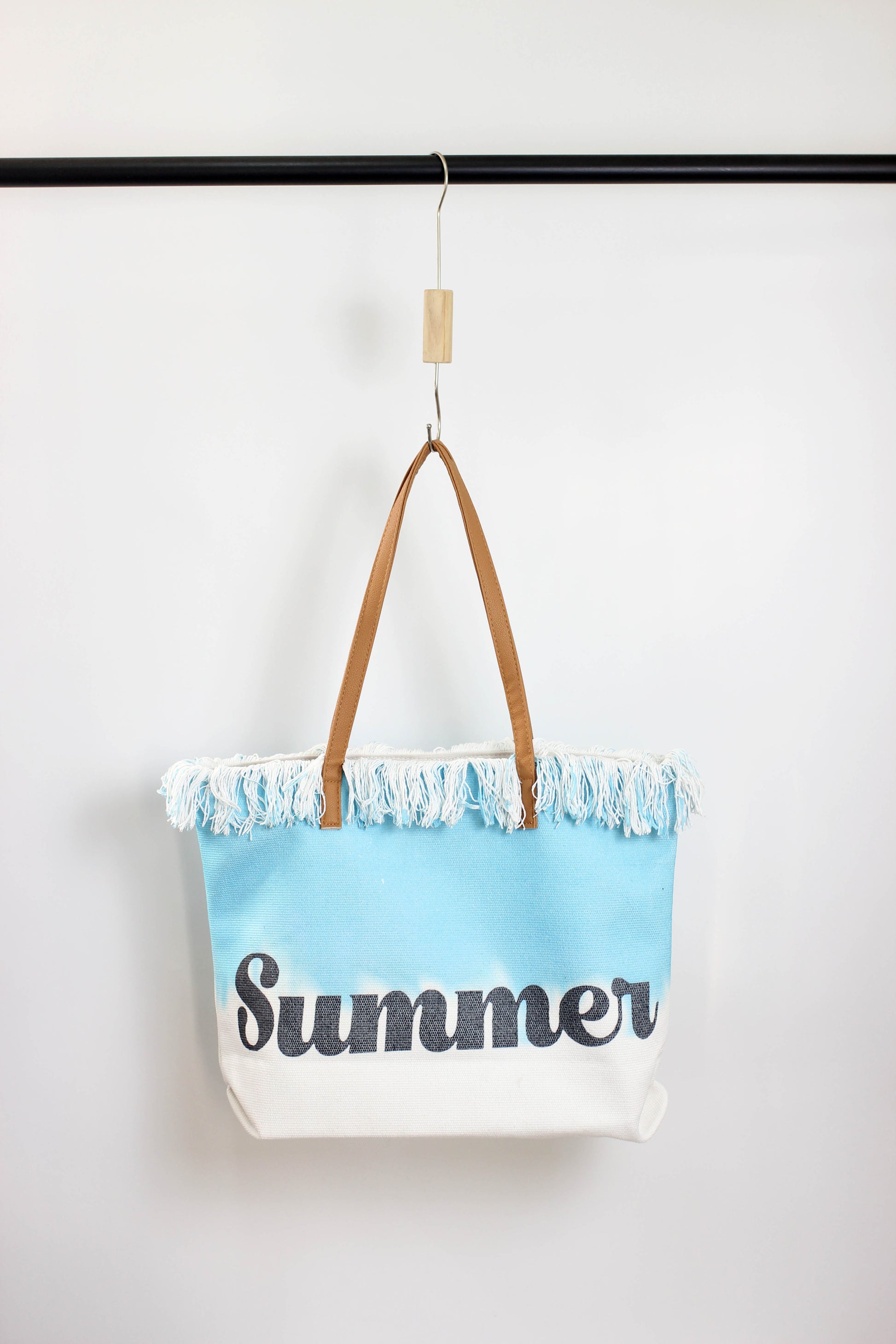 Trendy and stylish canvas tote bag with a boho fringe design and "Summer" print. This large-capacity beach bag features durable faux leather handles, making it perfect for travel, shopping, or casual outings. The dip-dye ombr¡§| effect adds a chic, eye-catching look. Lightweight yet sturdy, this shoulder bag is ideal for daily essentials, beach trips, and vacations.