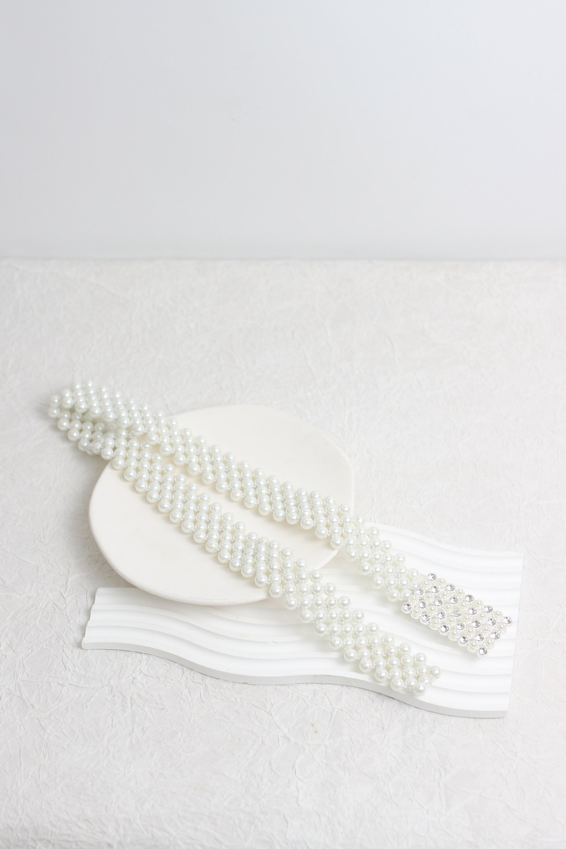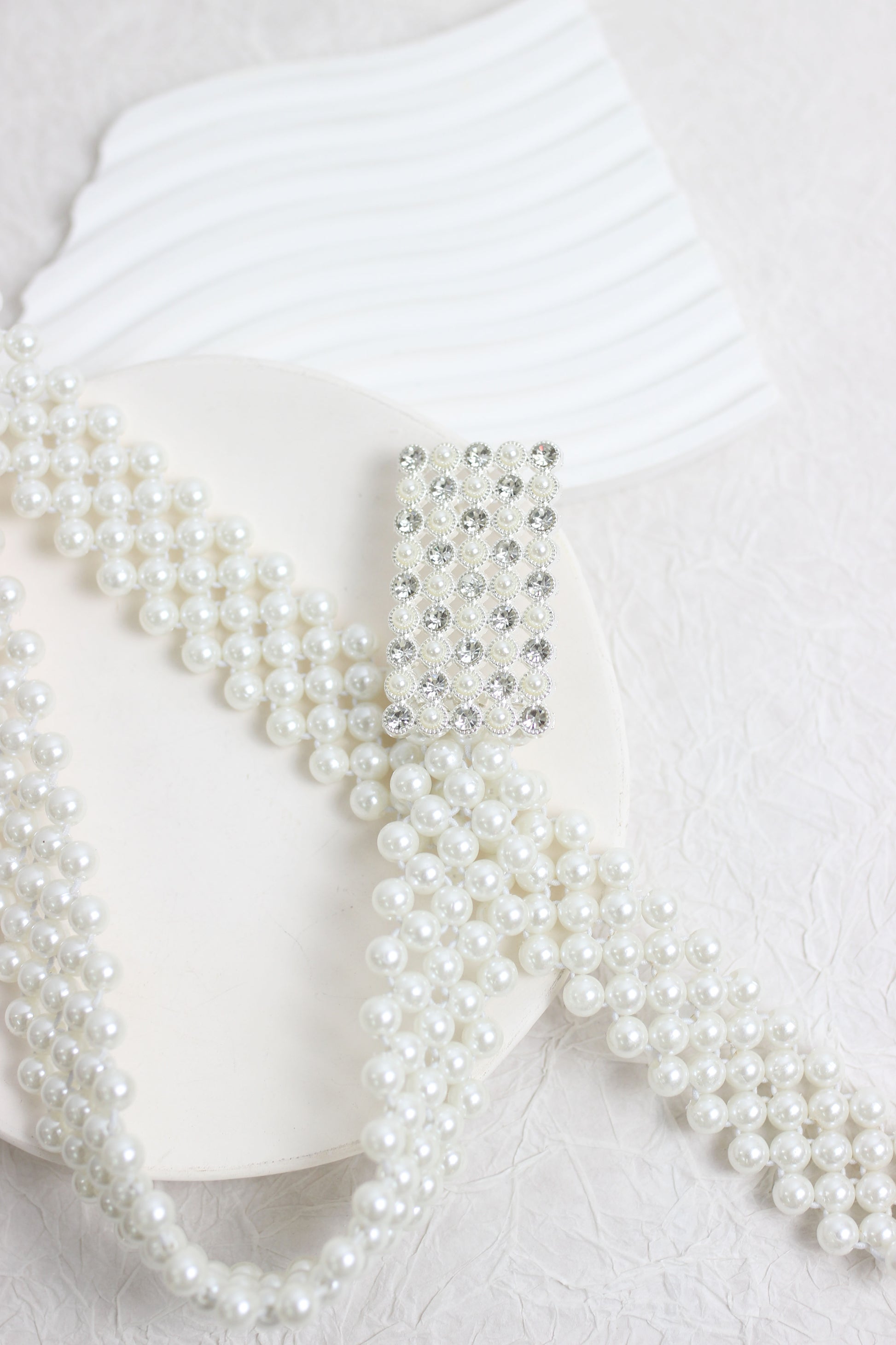 A2501DHS68784 - Elegant Multi-Layer Pearl Belt with Rhinestone Buckle