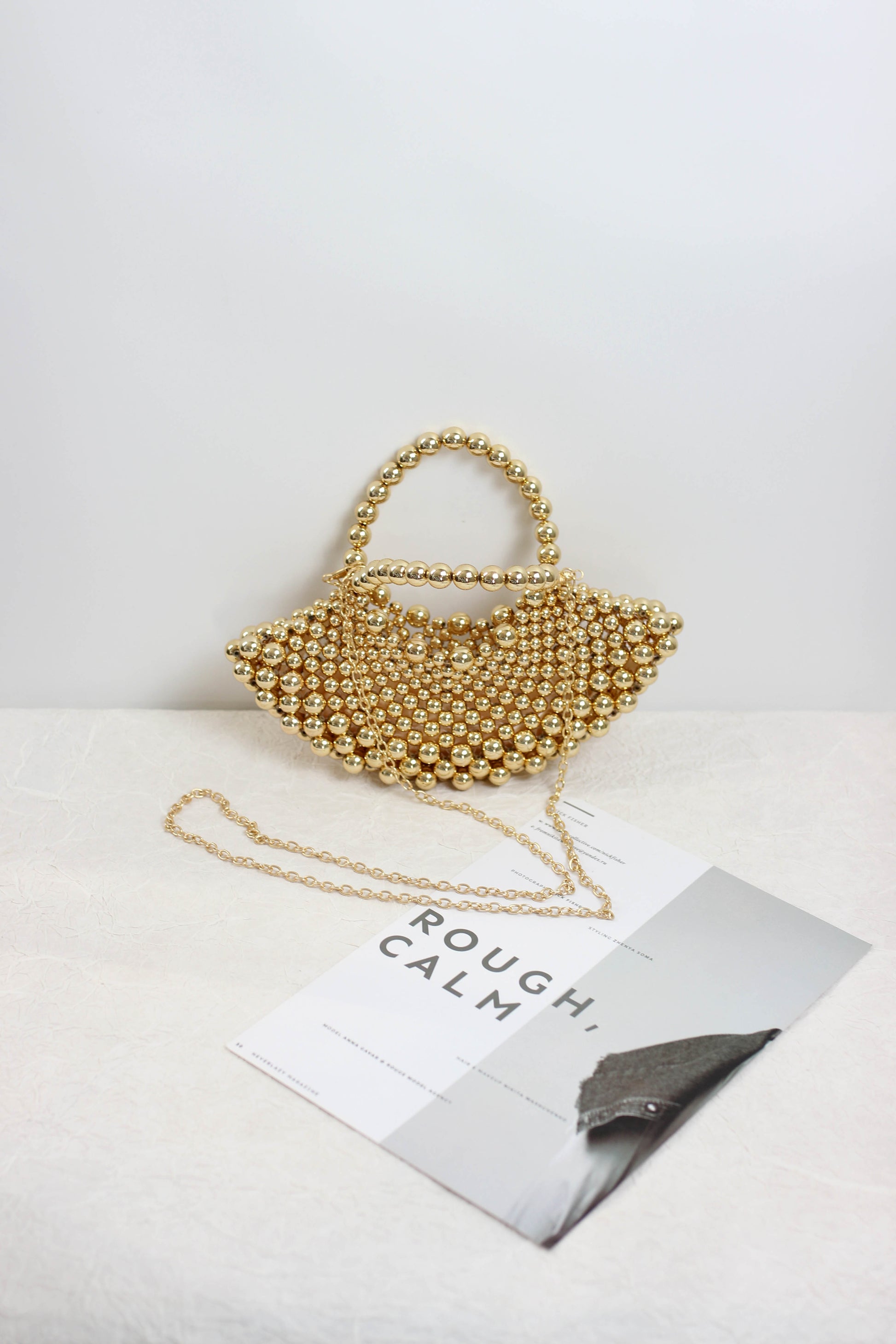 A2502SK54115 - Elegant Gold Beaded Handbag with Chain Strap