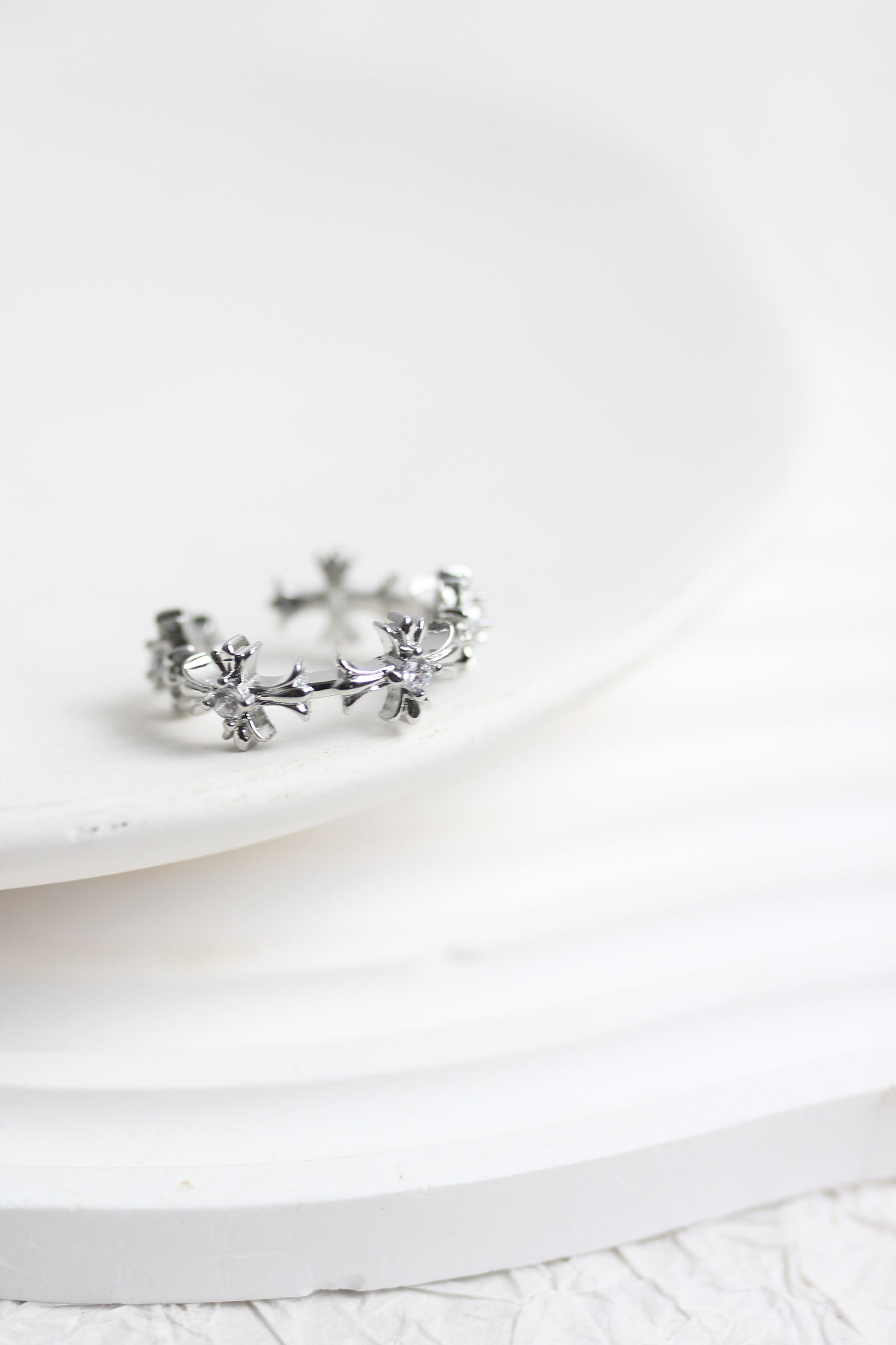 Elevate your style with this elegant silver ring set, featuring two unique designs. One ring boasts a delicate floral pattern with sparkling crystal accents, while the other offers a minimalist star engraving for a modern touch. Crafted from high-quality silver-tone metal, these rings are adjustable, making them comfortable for various finger sizes. Perfect for stacking or wearing individually, this chic and versatile set is ideal for everyday wear, special occasions, or as a thoughtful gift.