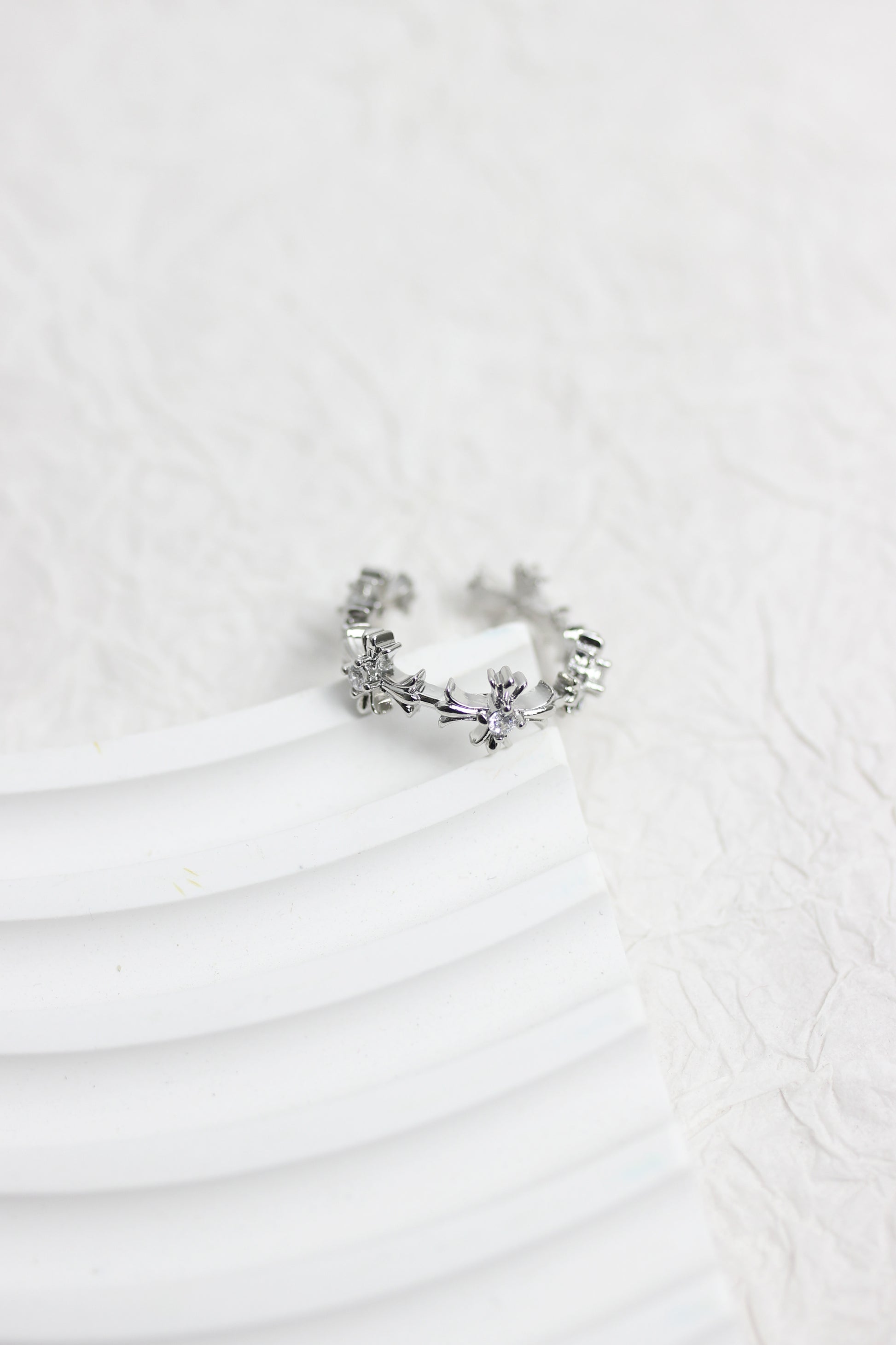 A2502YQ27363 - Silver Floral Adjustable Ring Set