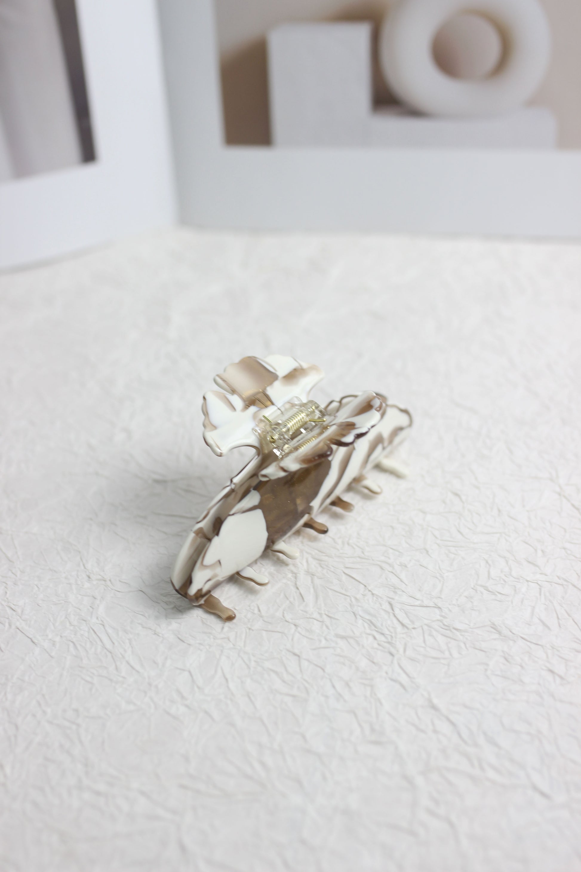 Elevate your everyday hairstyle with this elegant Marbled Hair Claw Clip made from high-quality cellulose acetate. Featuring a chic cream and mocha swirl design, this large claw clip blends functionality with modern aesthetic. Its strong spring grip holds hair securely without pulling, making it perfect for thick or long hair.