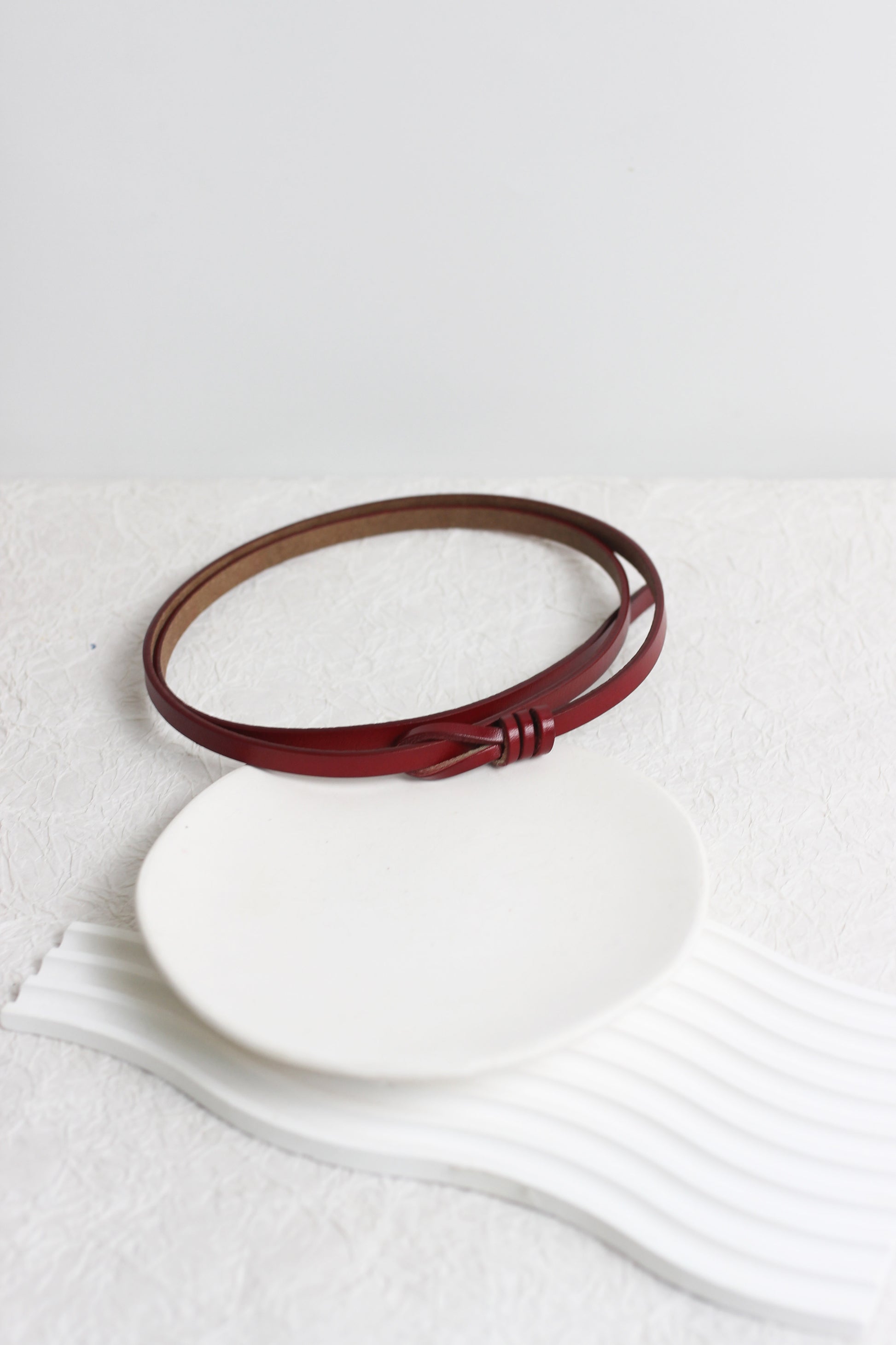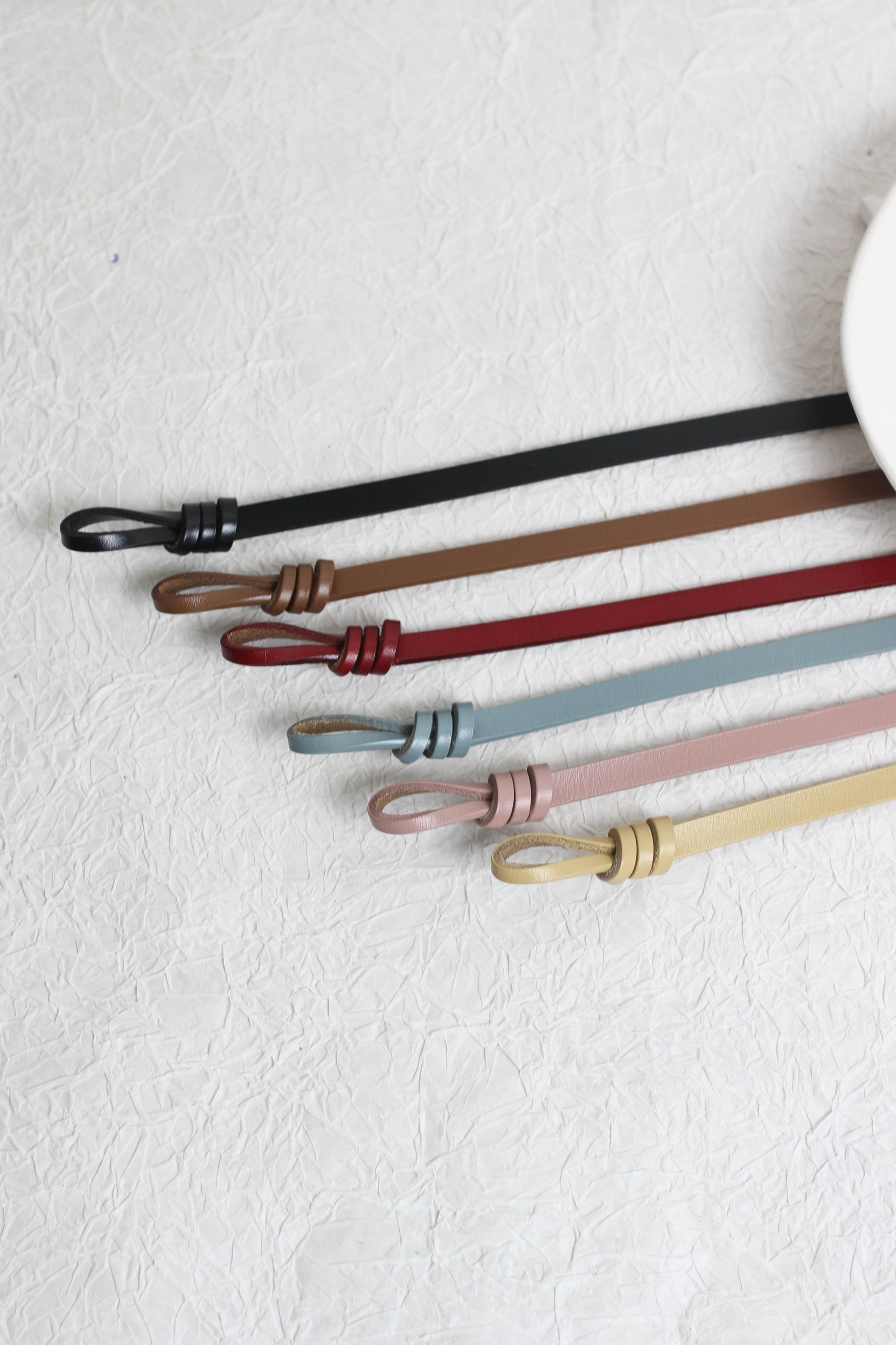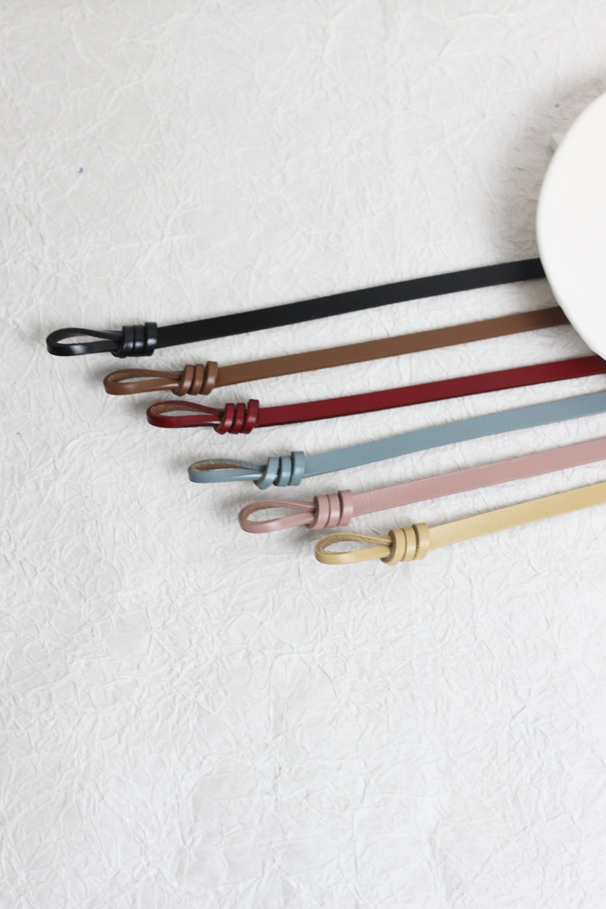 Elevate your everyday outfit with this sleek and slim leather knot belt. Designed with a modern loop-knot detail, this belt is the perfect accessory to add subtle sophistication to dresses, blouses, tunics, or high-waisted bottoms. Available in a wide range of elegant colors including black, brown, burgundy, teal, blush pink, and mustard, it?¡¥s a versatile addition to any wardrobe.
