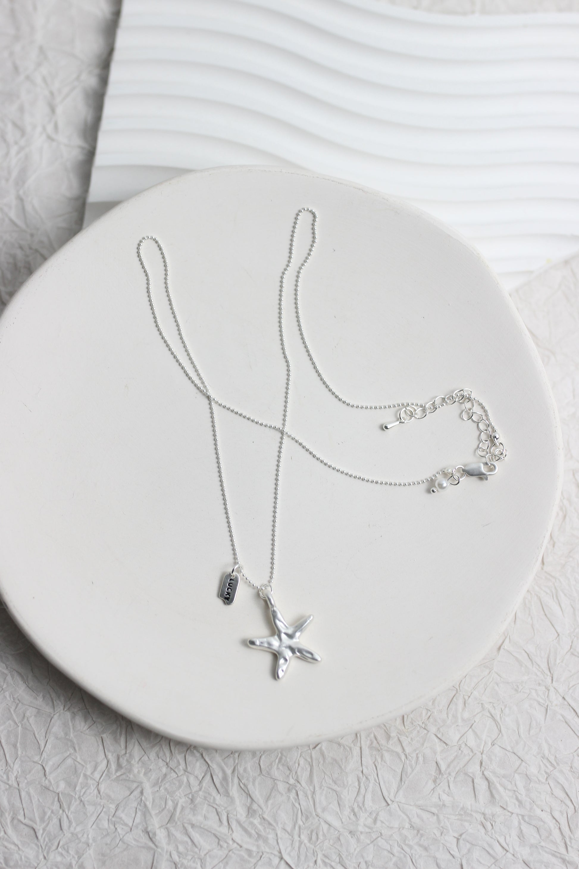 Add a touch of the sea to your style with this silver starfish necklace. Featuring a textured 3D starfish charm and a delicate bead chain, this piece blends beach-inspired elegance with a minimalist aesthetic. The "Lucky" tag adds a personal and meaningful accent. Perfect for everyday wear, vacations, or ocean lovers, this lightweight silver-toned necklace offers both style and comfort.