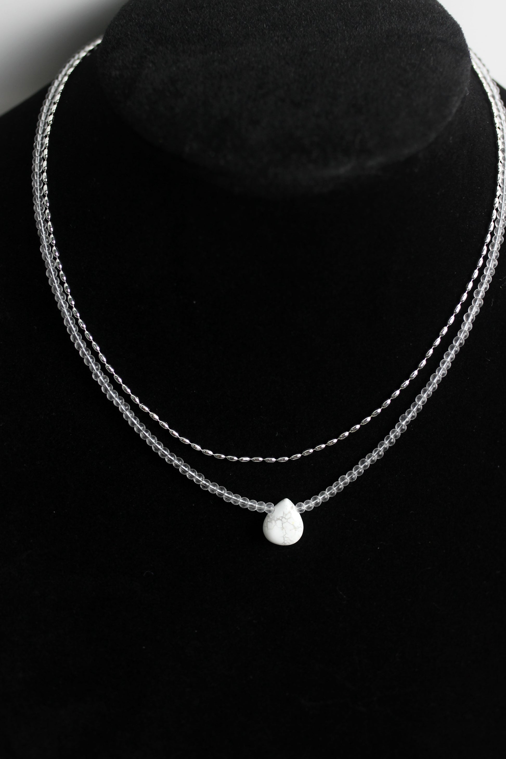 A2506XYDZ84672 - Double Layer Necklace with White Howlite Teardrop Pendant