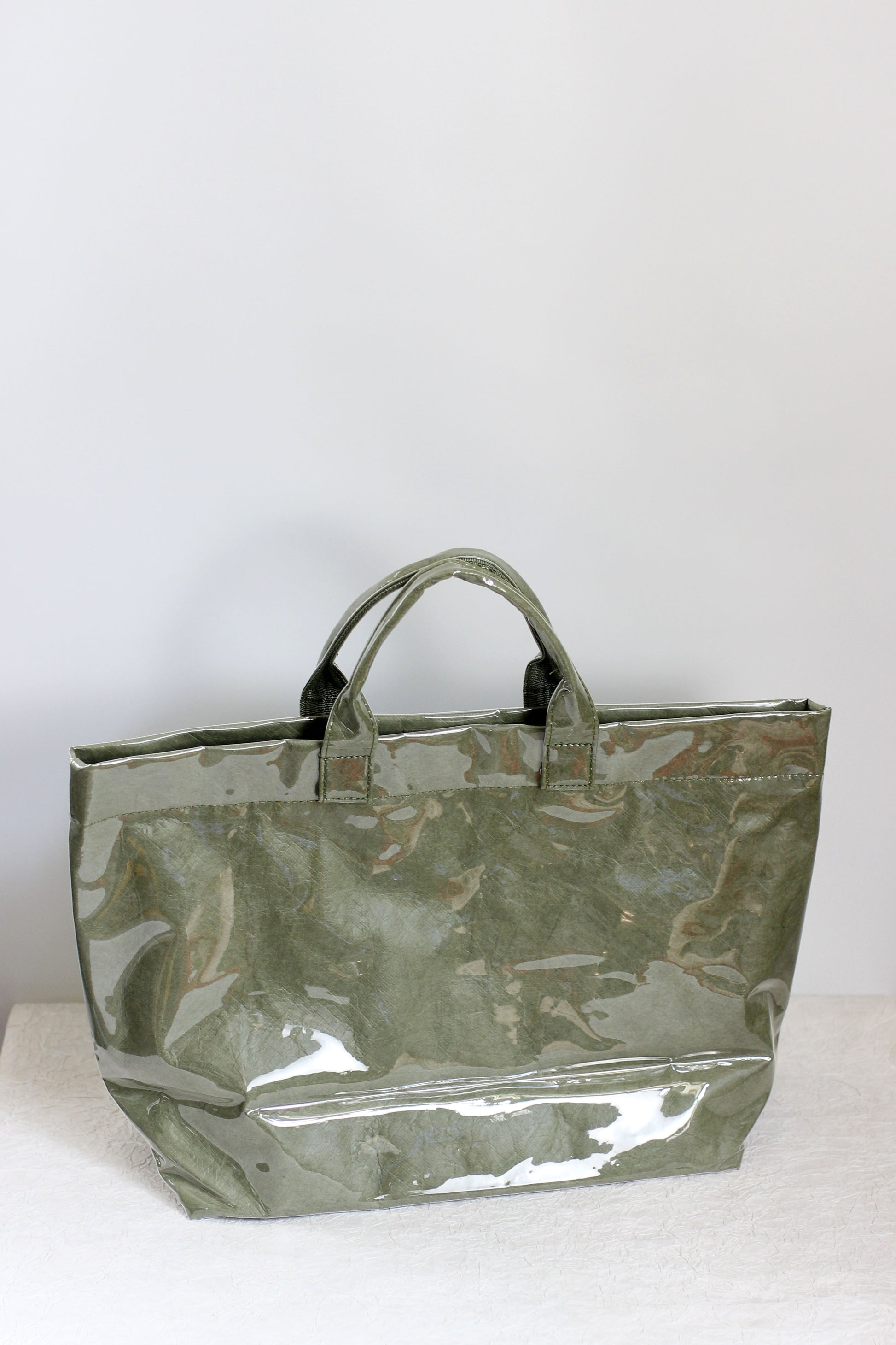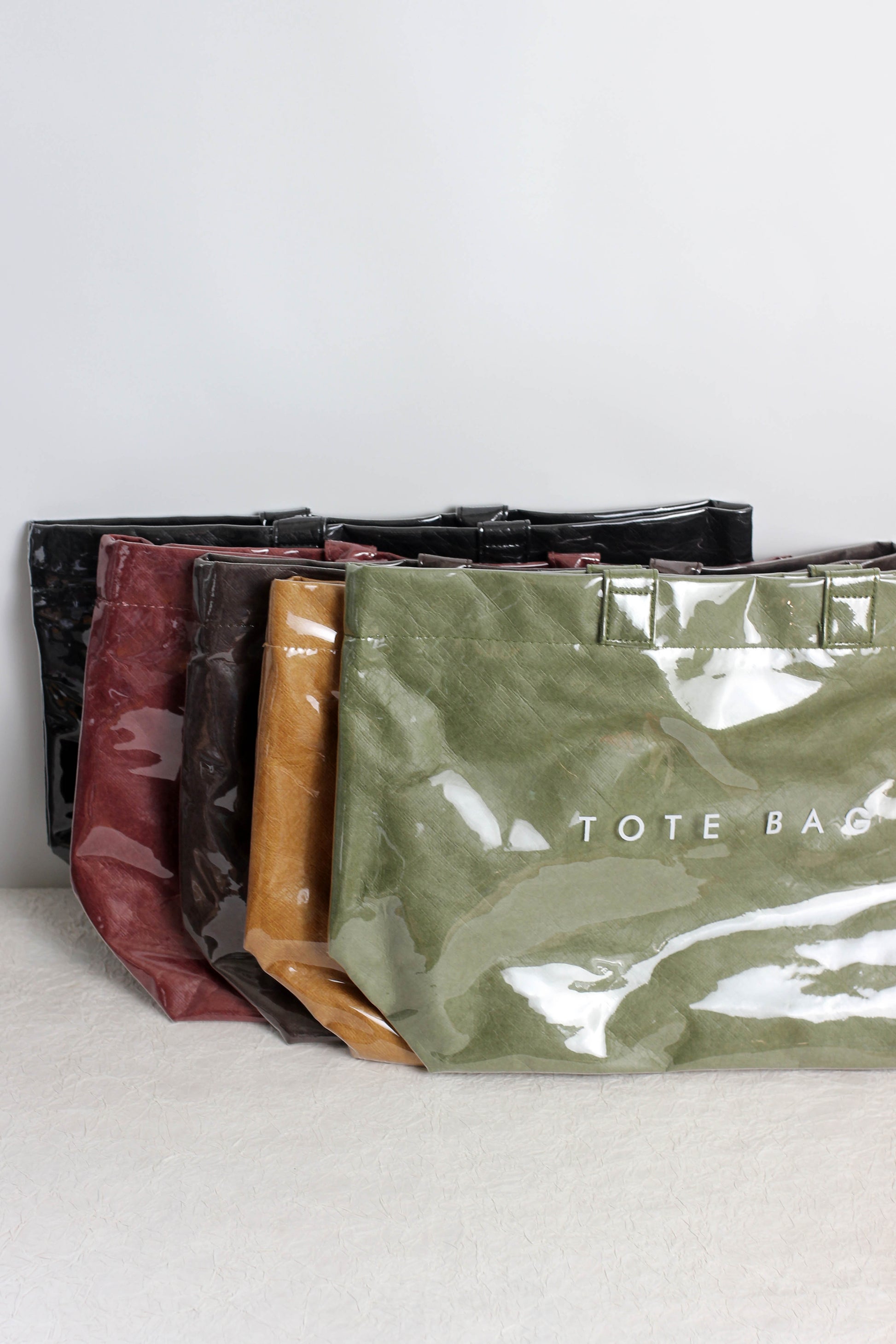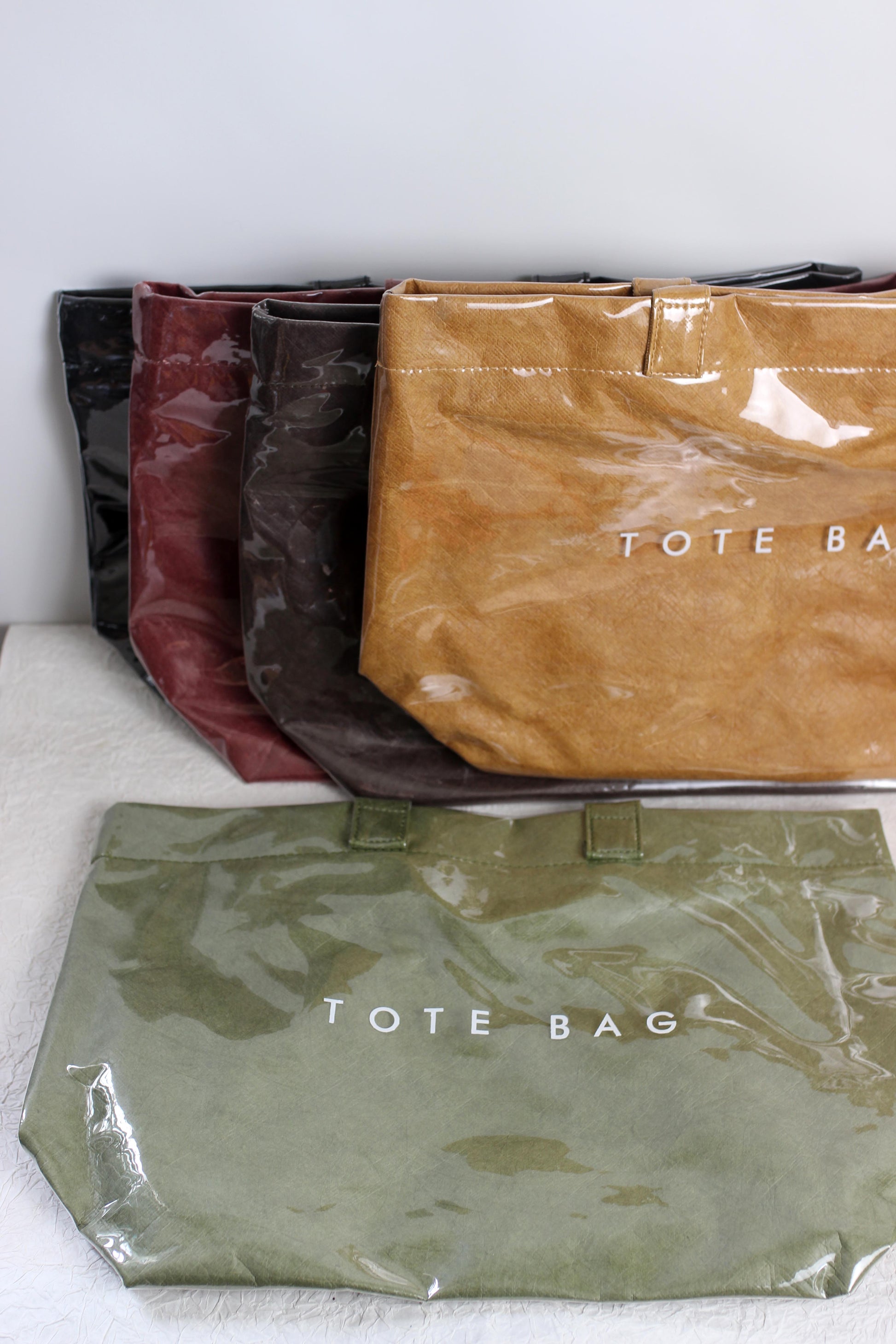 A minimalist and stylish tote bag crafted from glossy PU-coated material, combining durability with fashion. Lightweight yet spacious, it is ideal for daily use, shopping, commuting, or casual outings. Features a structured shape, reinforced handles, and wipe-clean surface. Available in multiple natural tones (olive green, camel brown, dusty rose, coffee, black.), this eco-inspired tote makes a practical and eye-catching companion.