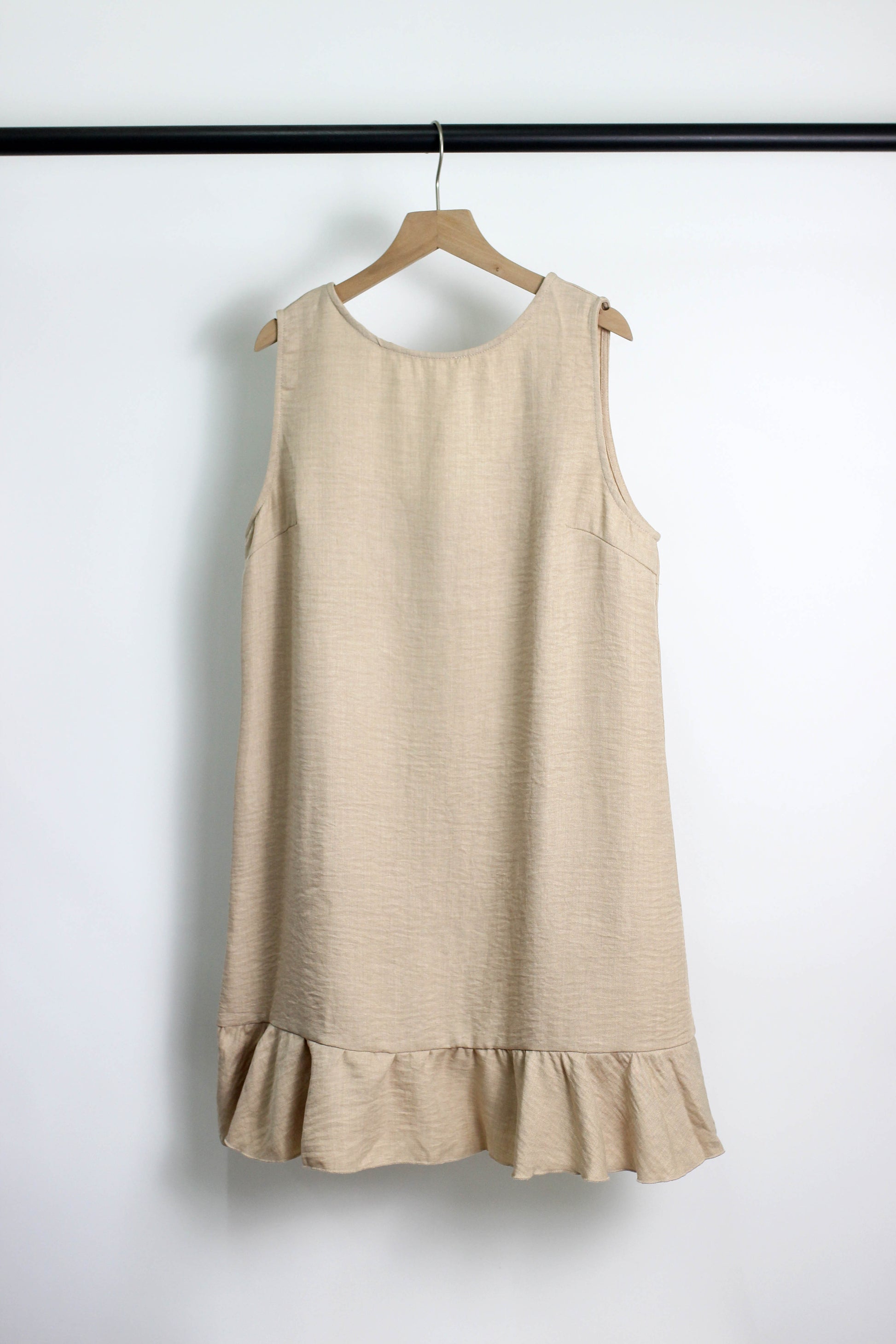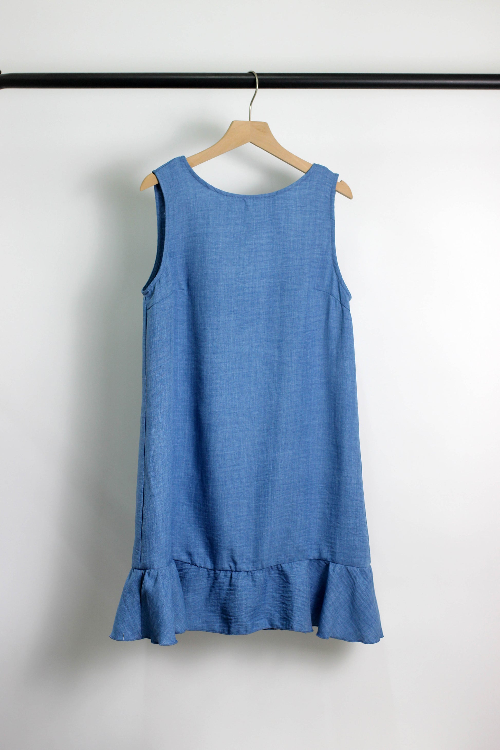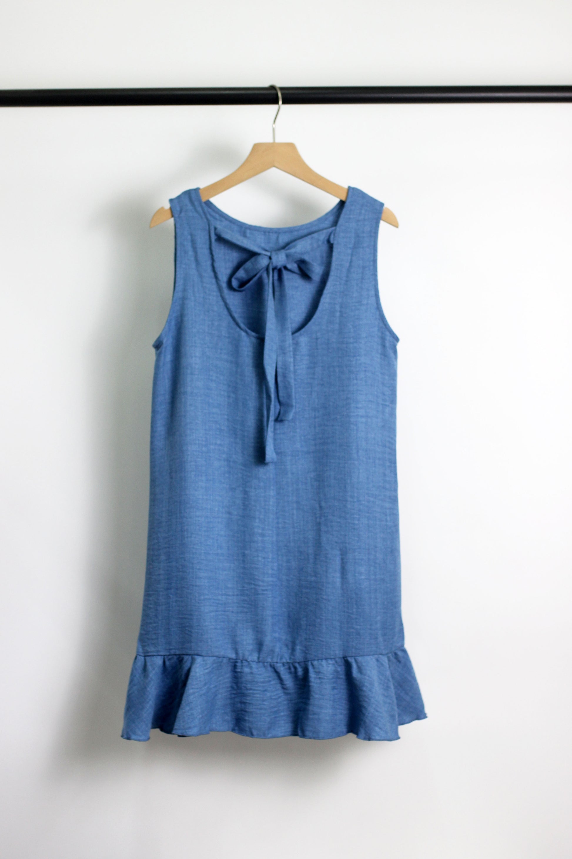 Elevate your wardrobe with this chic sleeveless ruffle hem shift dress. Designed for both casual and semi-formal wear, this lightweight and breathable dress features a classic round neckline and a charming bow tie detail at the back for an elegant touch. The ruffle hem adds a playful and feminine flair, while the relaxed fit ensures all-day comfort. Perfect for spring and summer outings, work, brunch, or vacation. Available in multiple vibrant colors to suit every style.