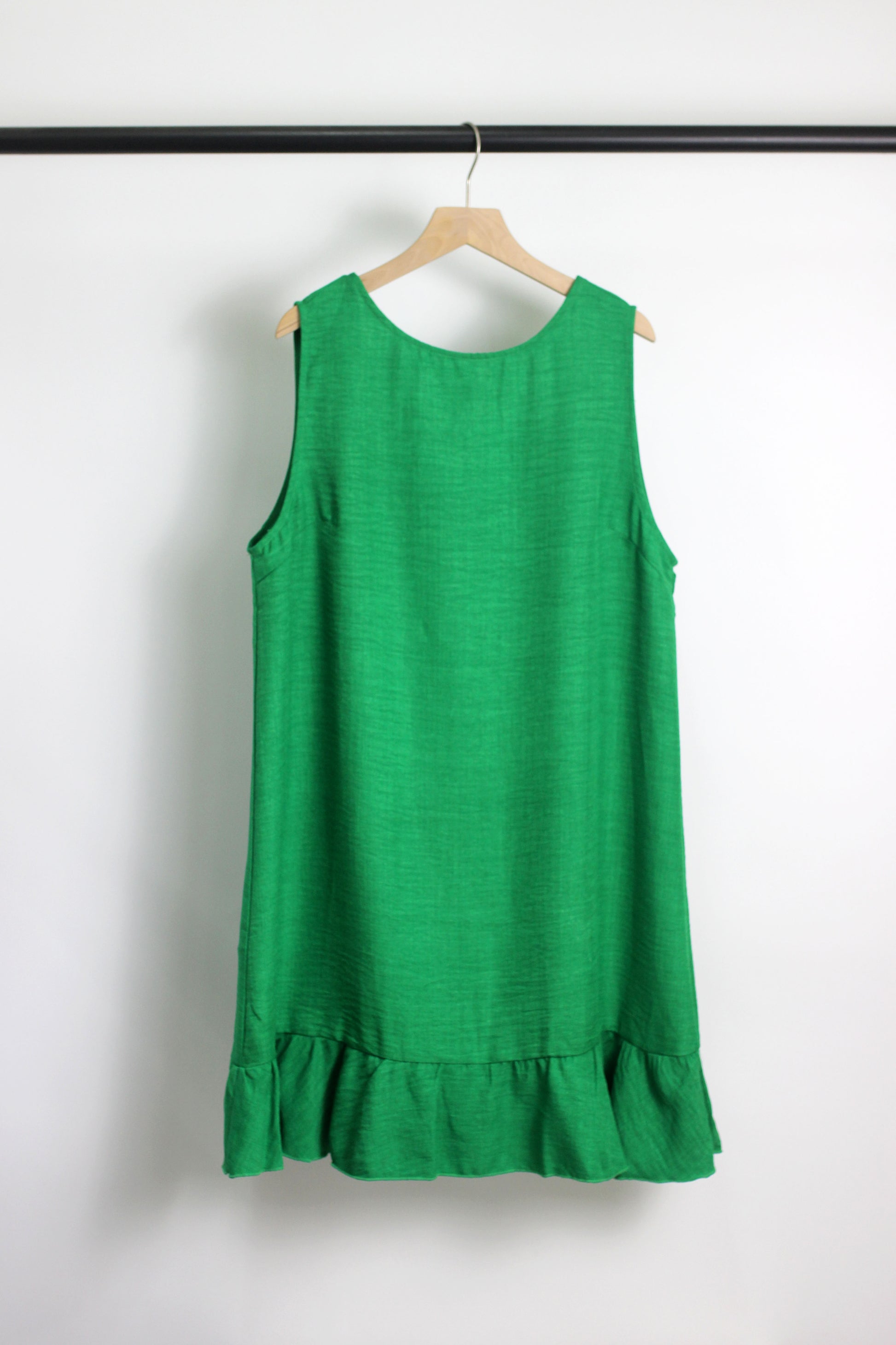 D2502GS21850 - Sleeveless Ruffle Hem Shift Dress with Back Bow Tie