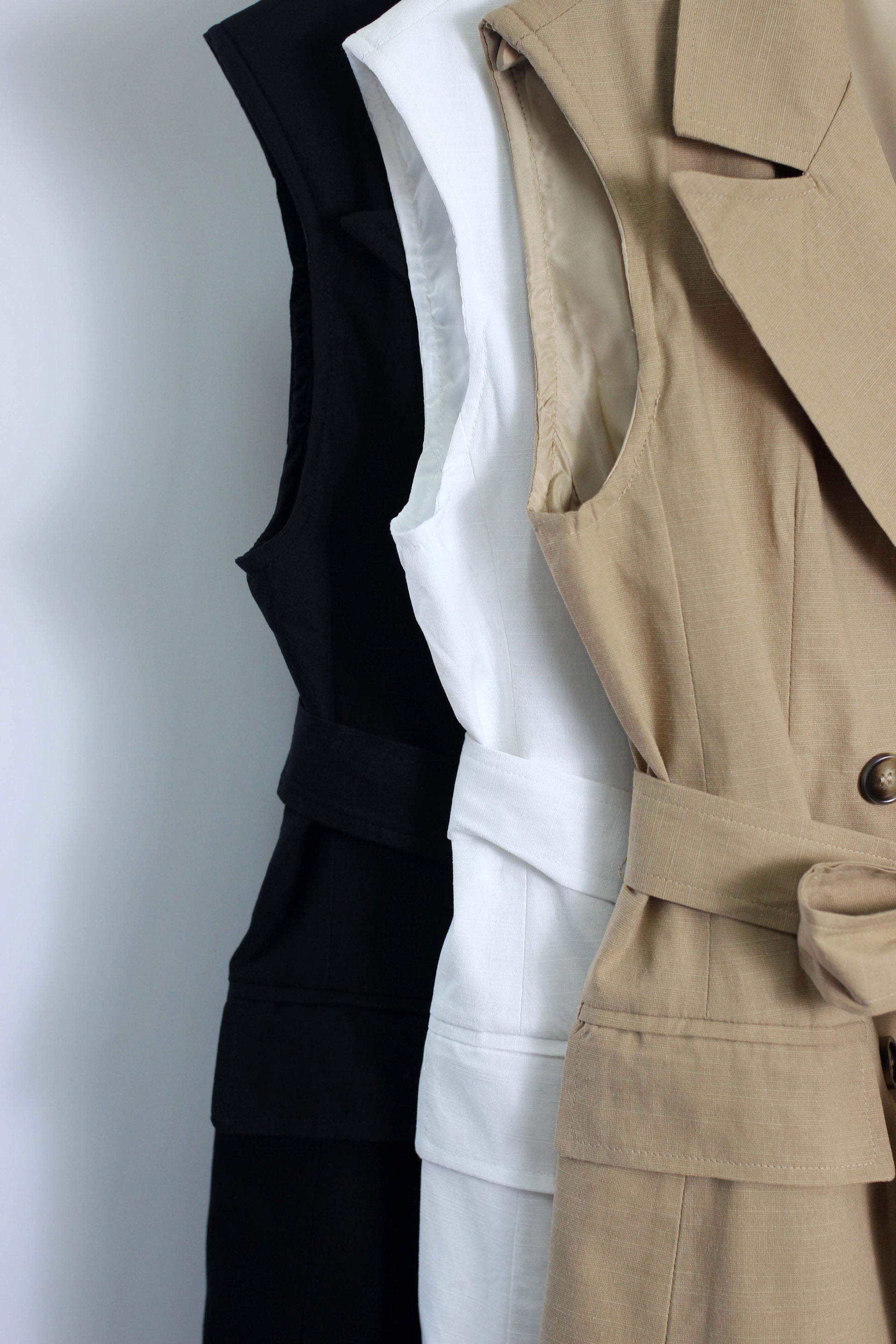 Available in classic neutrals: Khaki, White, and Black ¡ª perfect for office attire, fashion-forward layering, or a sleek monochrome look.