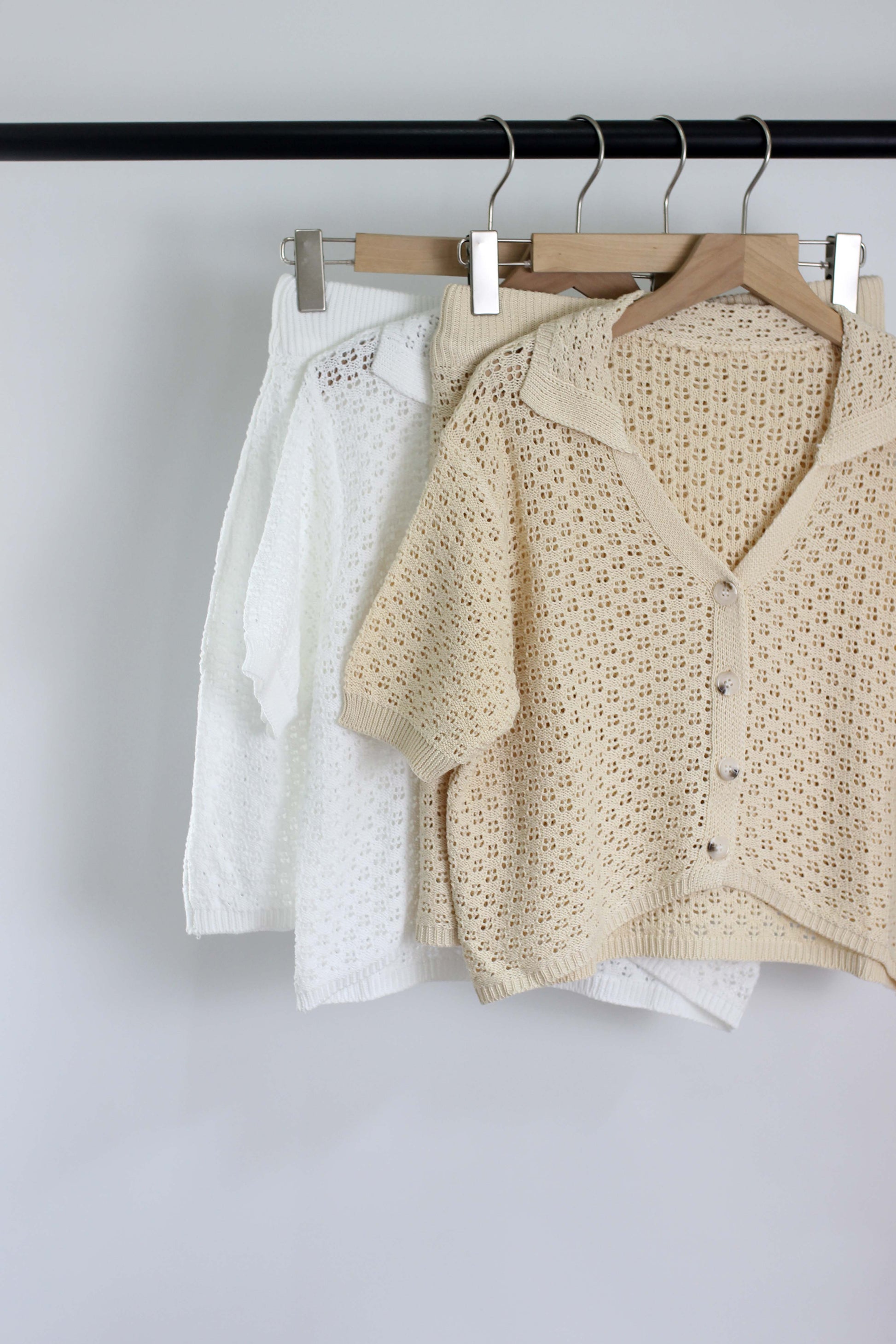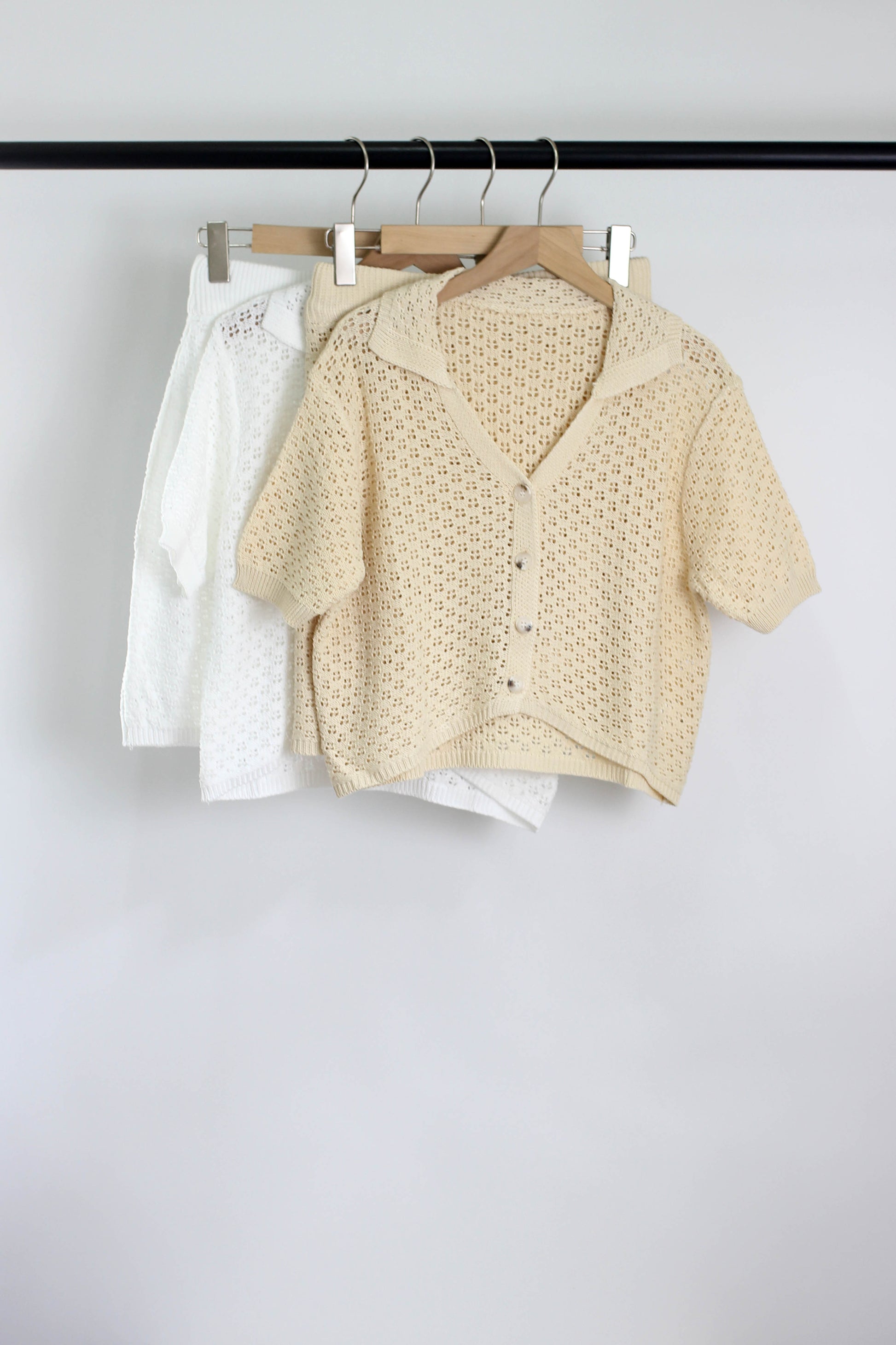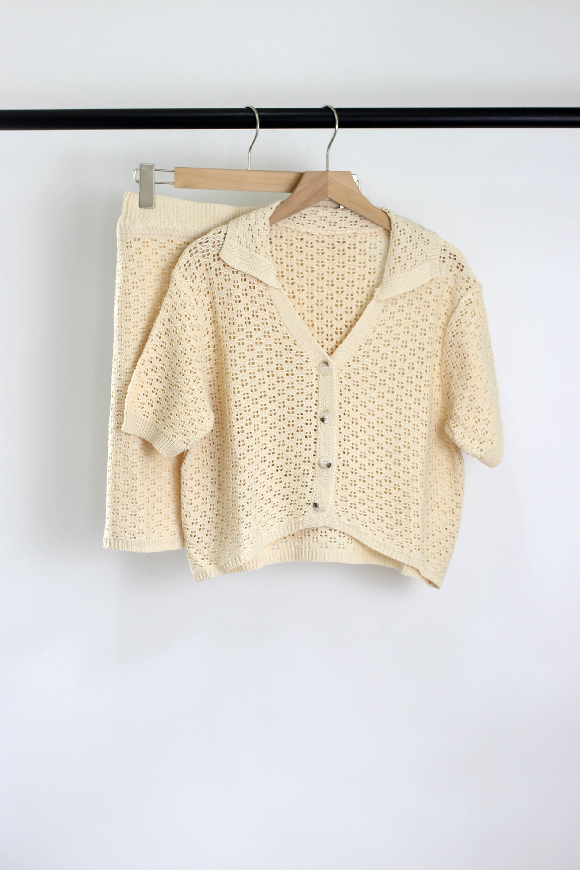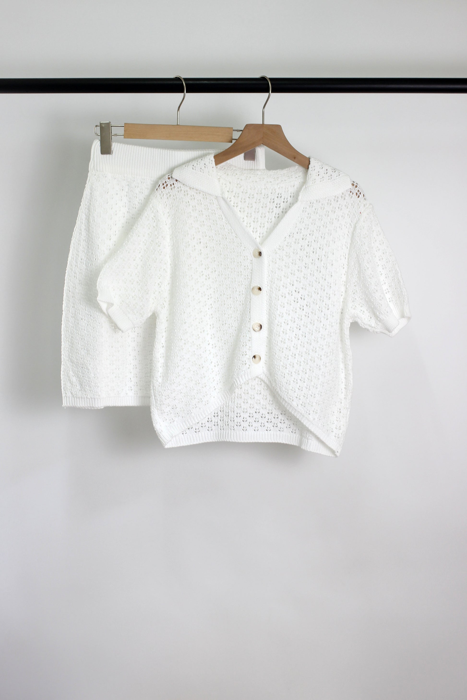 E2503GJ66893 - Knitted Eyelet Lace Two-Piece Set