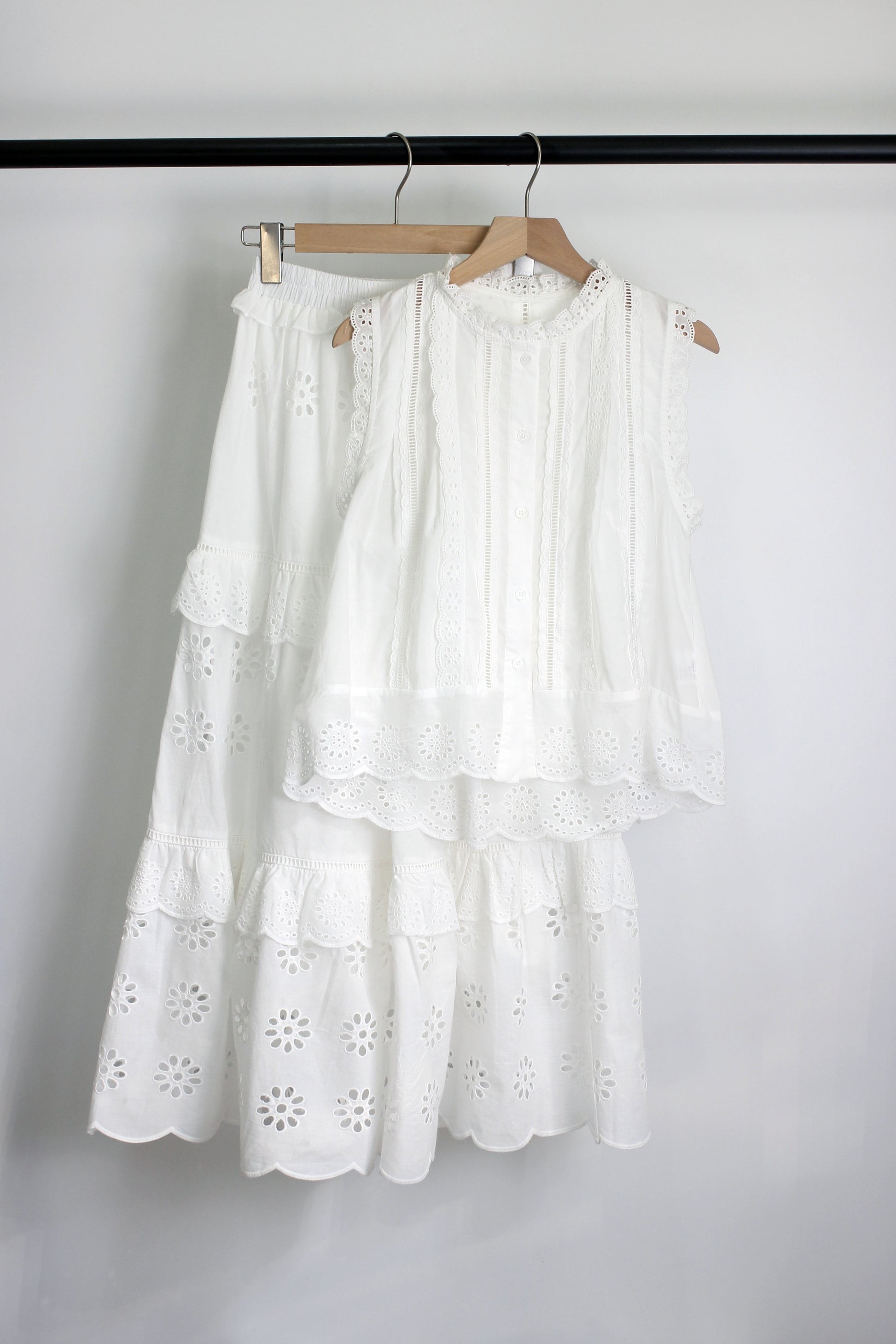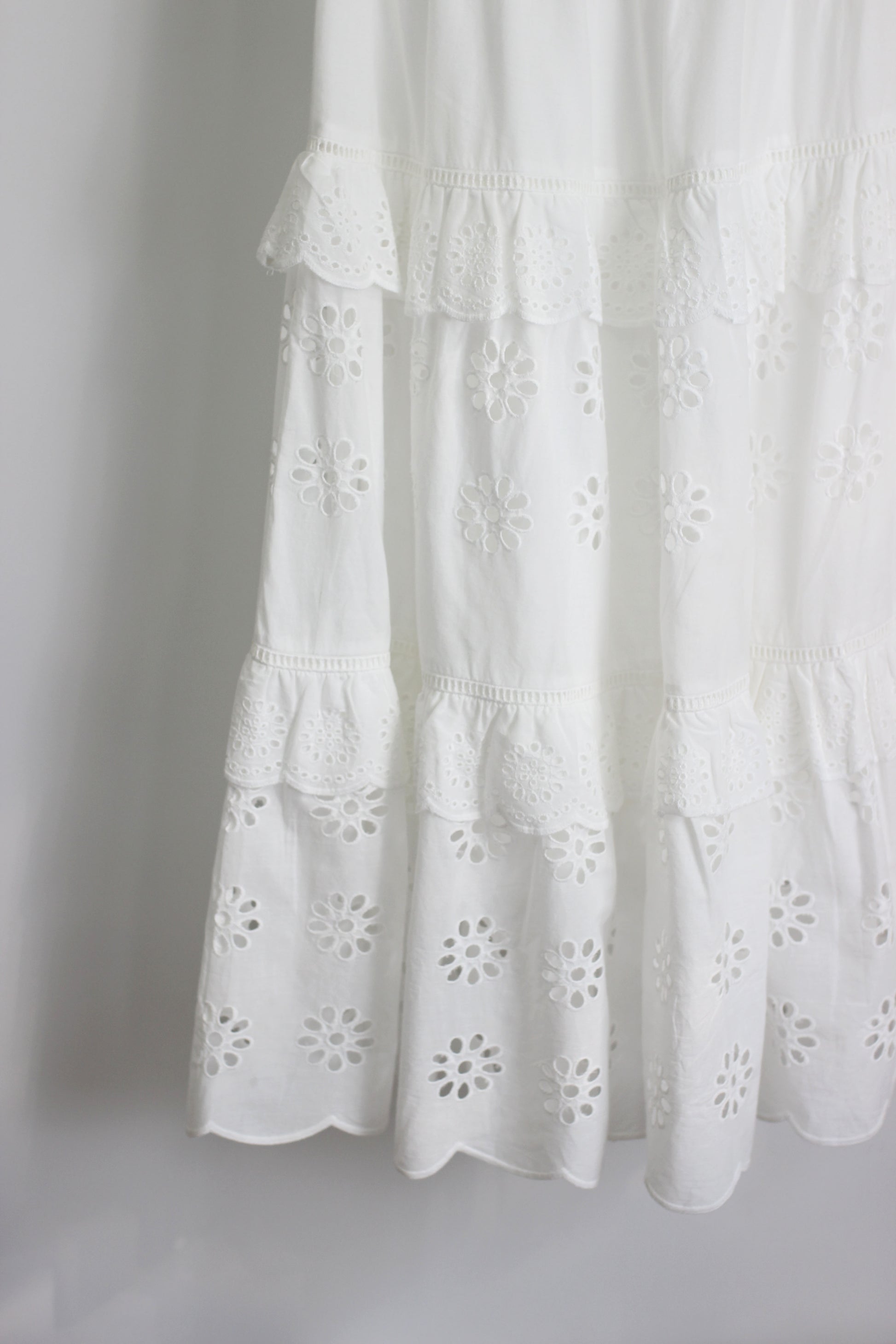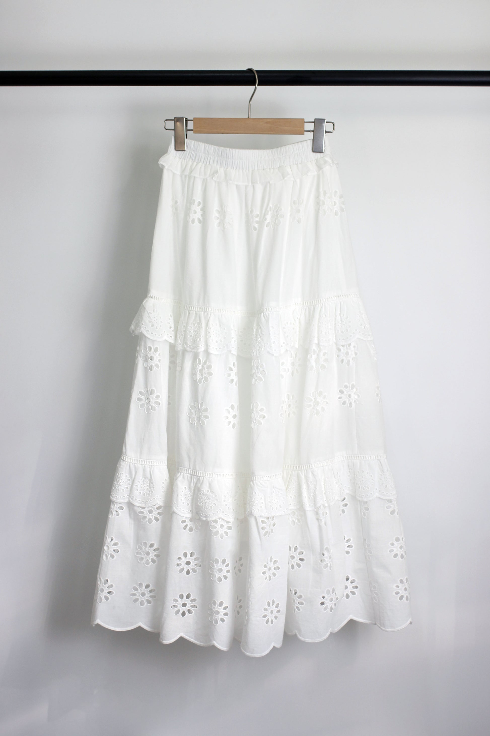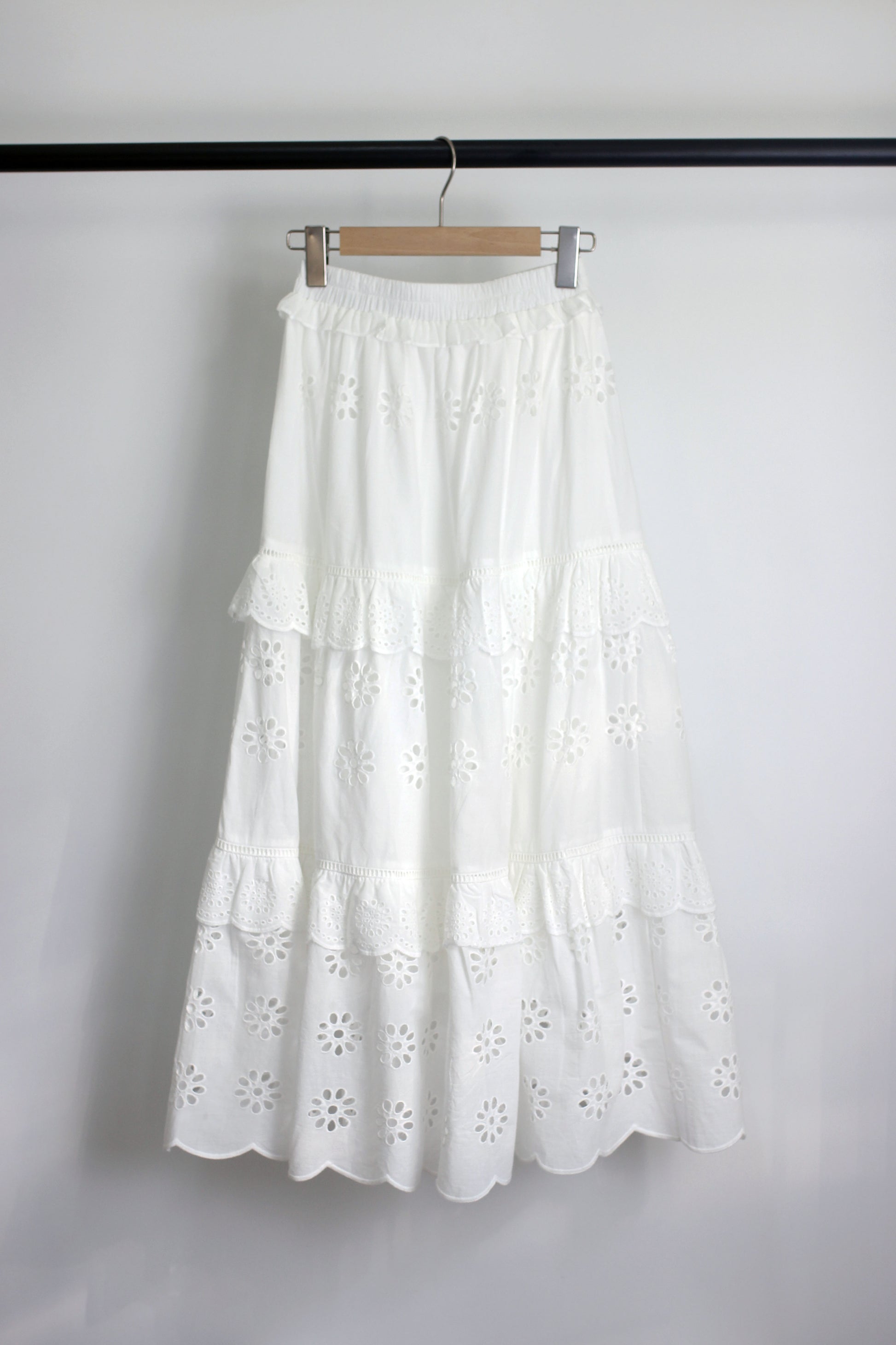 S2502ZNY31664 - White Cotton Eyelet Lace Maxi Skirt
