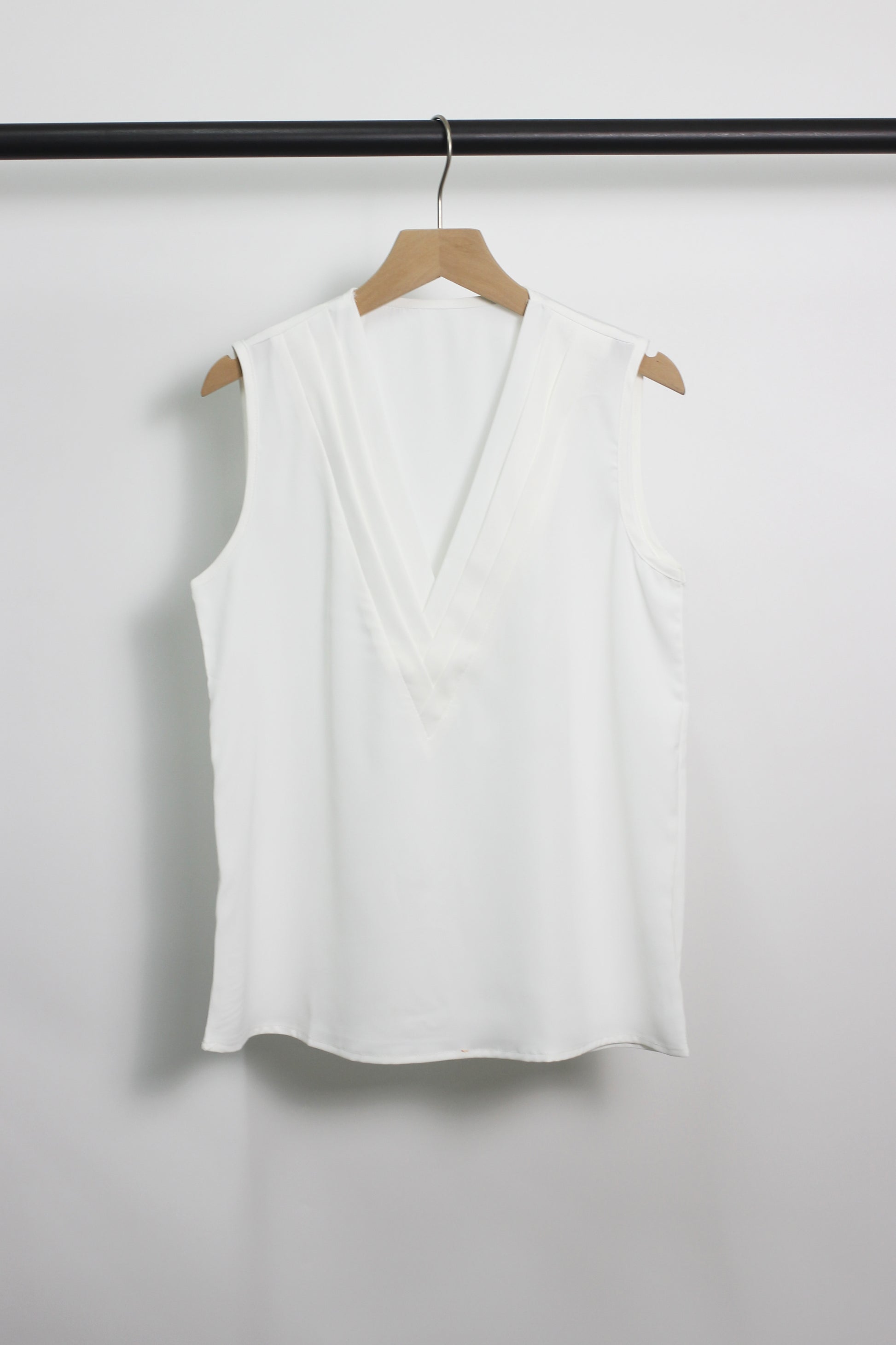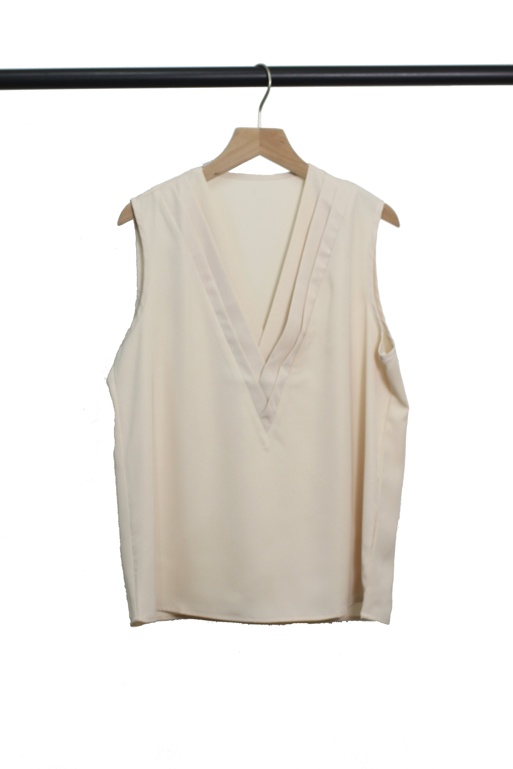 You can achieve both of trend and? comfortable with this never ending cuteness pleated top ! V-neck with pleated detail, sleeveless.