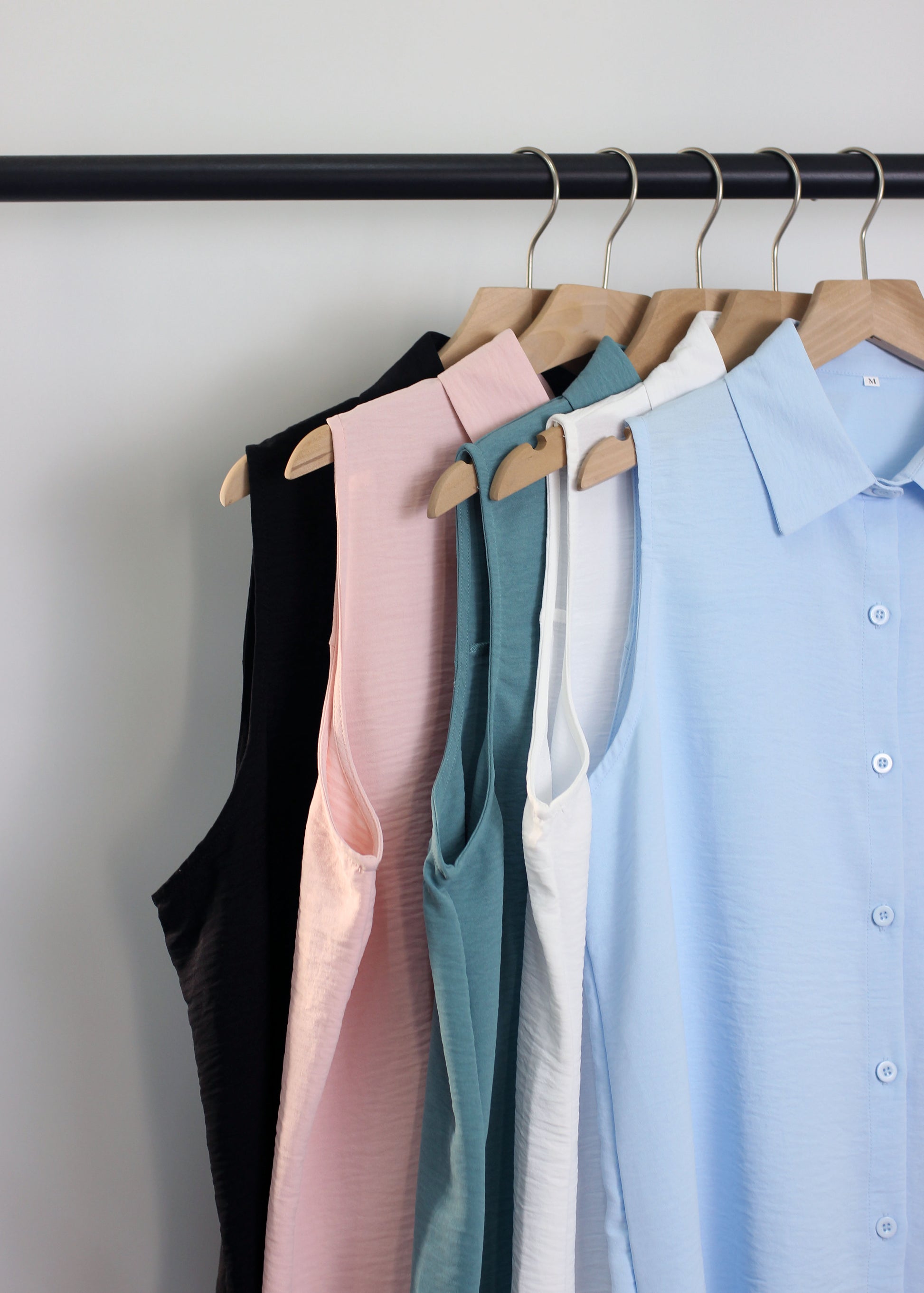 This sleeveless button-up blouse is a perfect blend of elegance and comfort, making it a must-have for any wardrobe. Featuring a classic shirt collar, lightweight breathable fabric, and a relaxed fit, this top is ideal for casual, office, or summer wear. The versatile design allows for effortless styling, whether tucked into trousers for a polished office look or worn loose for a casual chic outfit.