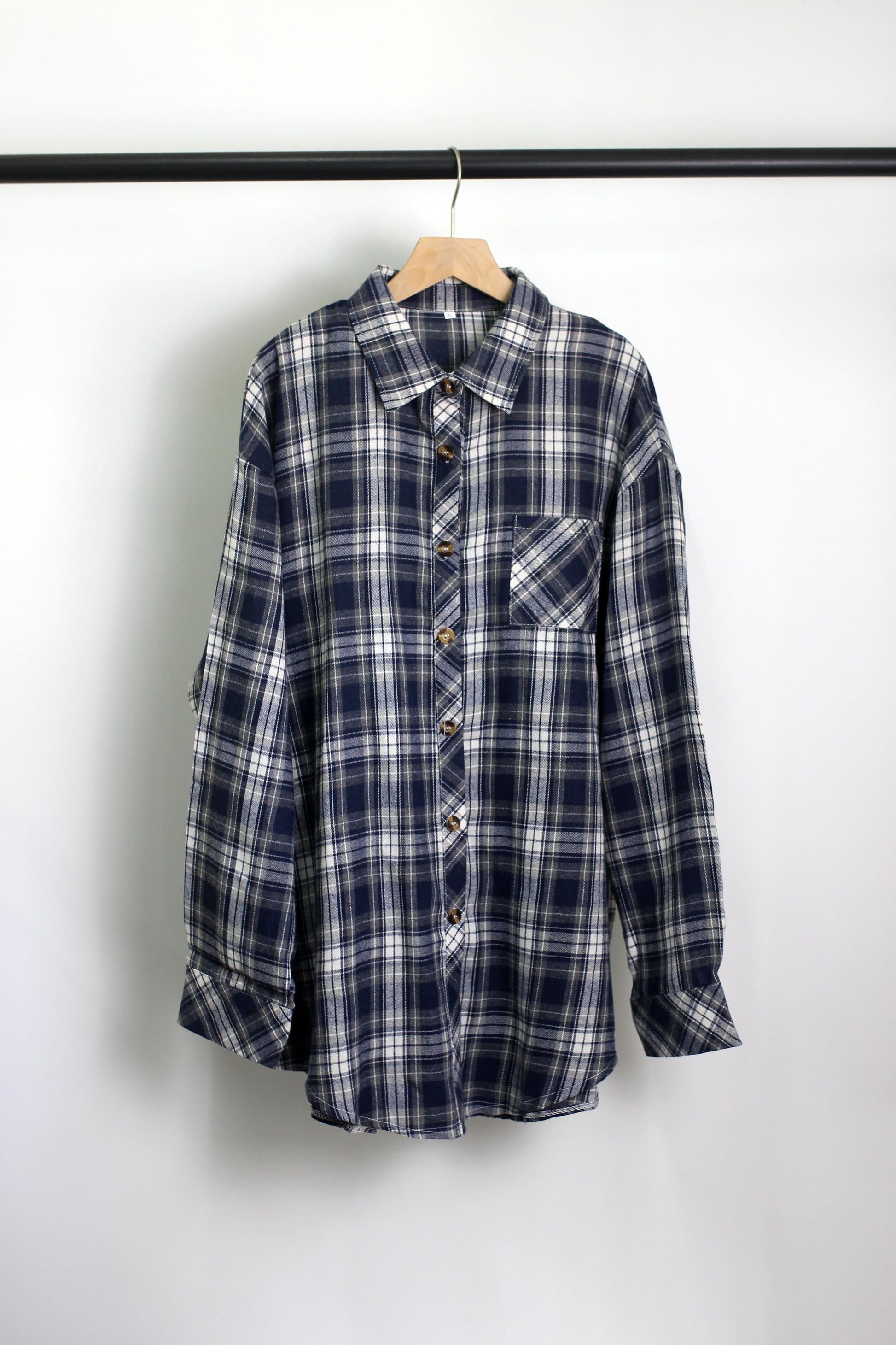 T2412MD53254 - Oversized Plaid Flannel Shirt