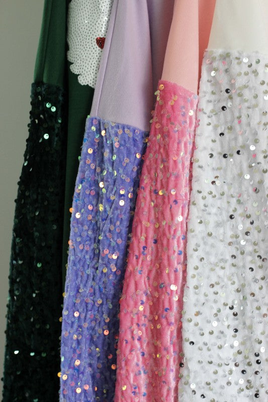 *Full sequin balloon sleeves, adding shine and a premium festive look.