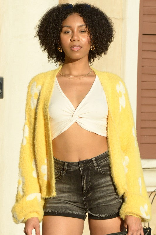 The Sweet Flower Pattern Open Front Cardigan Sweater is the cutest sight on the beach!