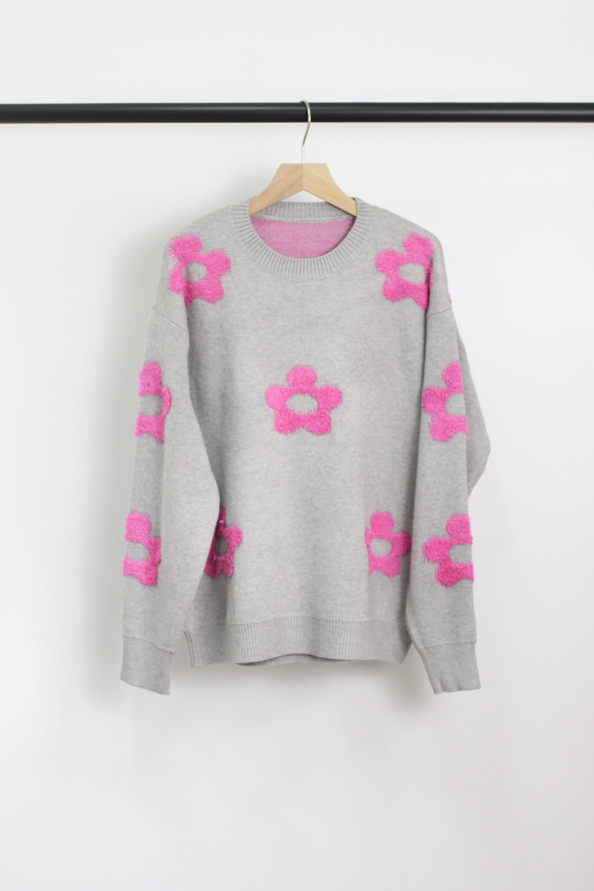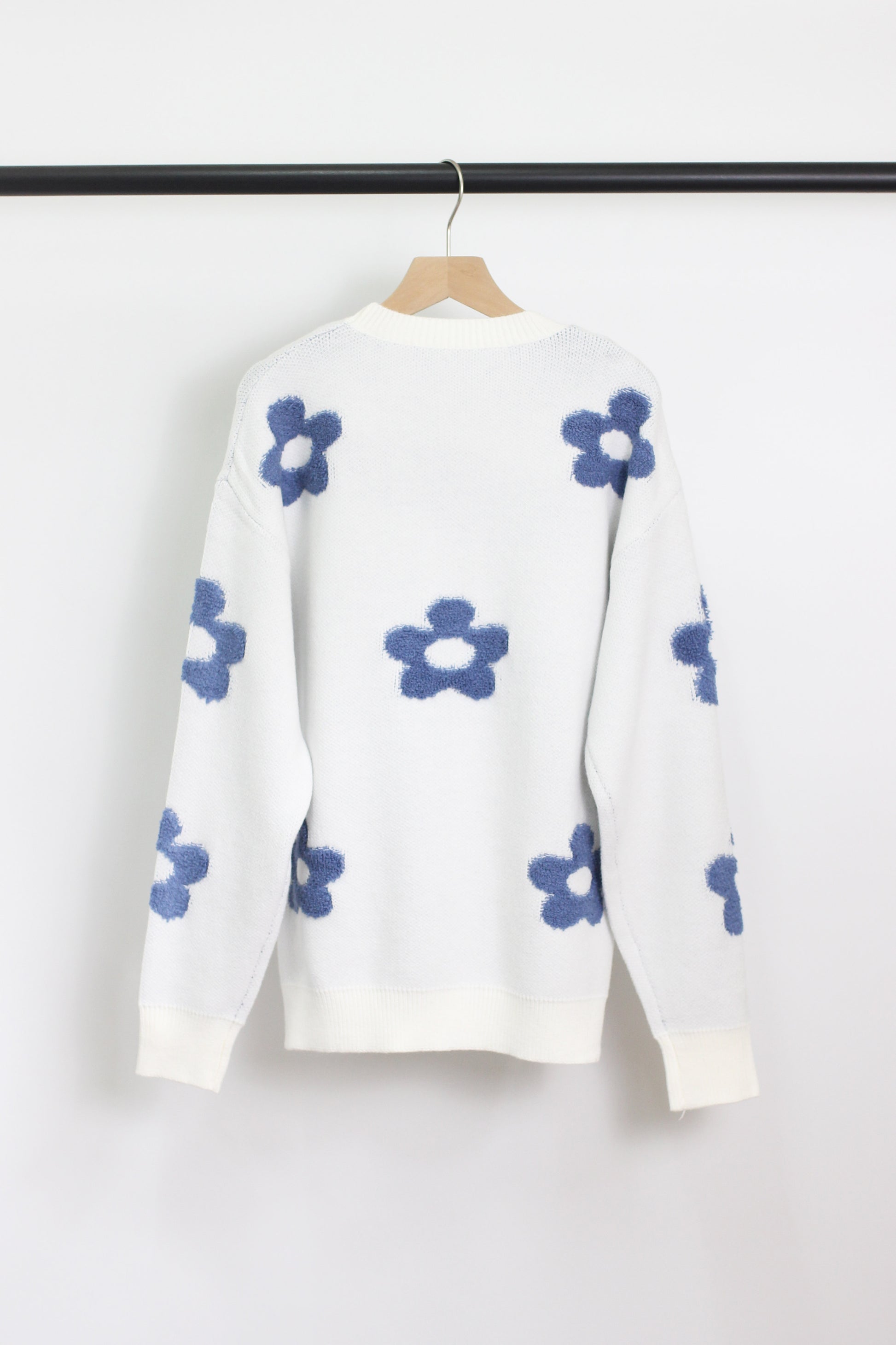 W2406JYYS52185 - WOMEN FLORAL PATTERN ACRYLIC SWEATER