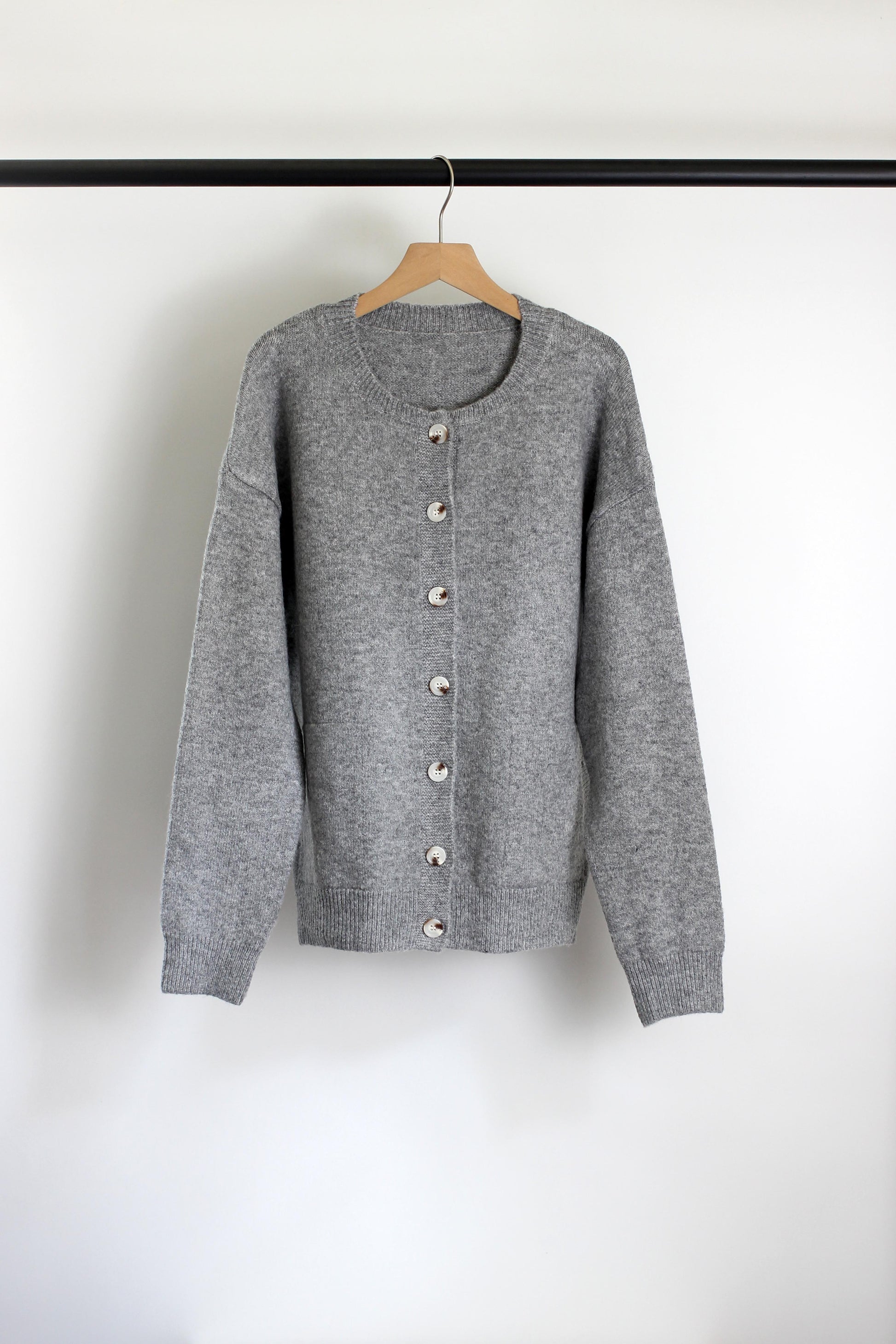 Stay warm and effortlessly stylish with our button-up cardigan, crafted from a cozy blend knit. Designed with a round neckline, full-length sleeves, and classic tortoiseshell buttons, this cardigan layers beautifully over your favorite tops or dresses. The relaxed fit and ribbed cuffs and hem offer all-day comfort, making it a perfect piece for both casual and office wear.