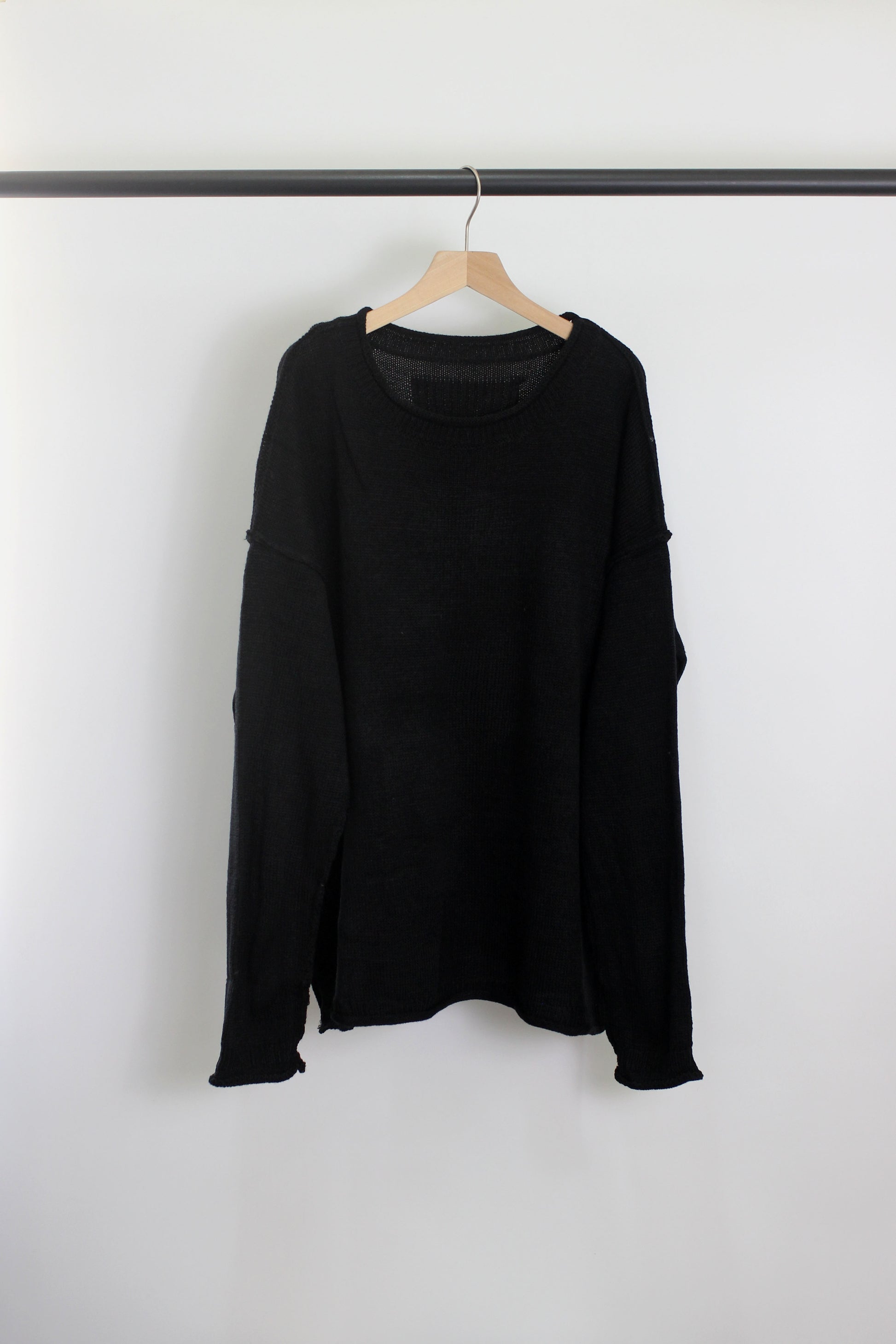 W2507SF29182 - Relaxed Knit Crewneck Sweater ¨C Side Slit Design