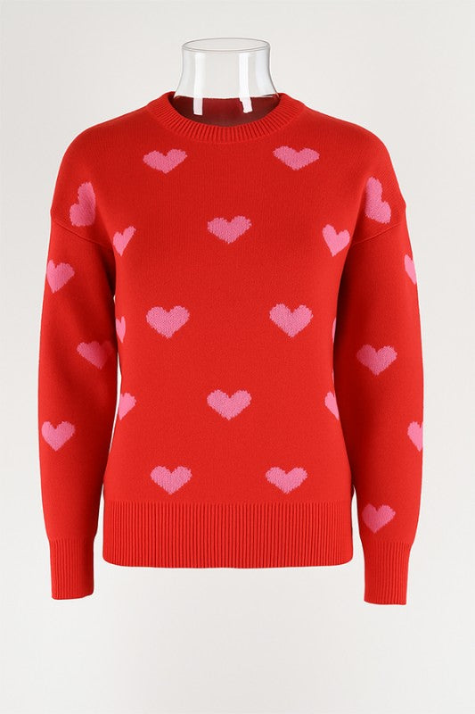 W2511JYYS94322-Cute Valentine Heart Pattern Knit Pullover